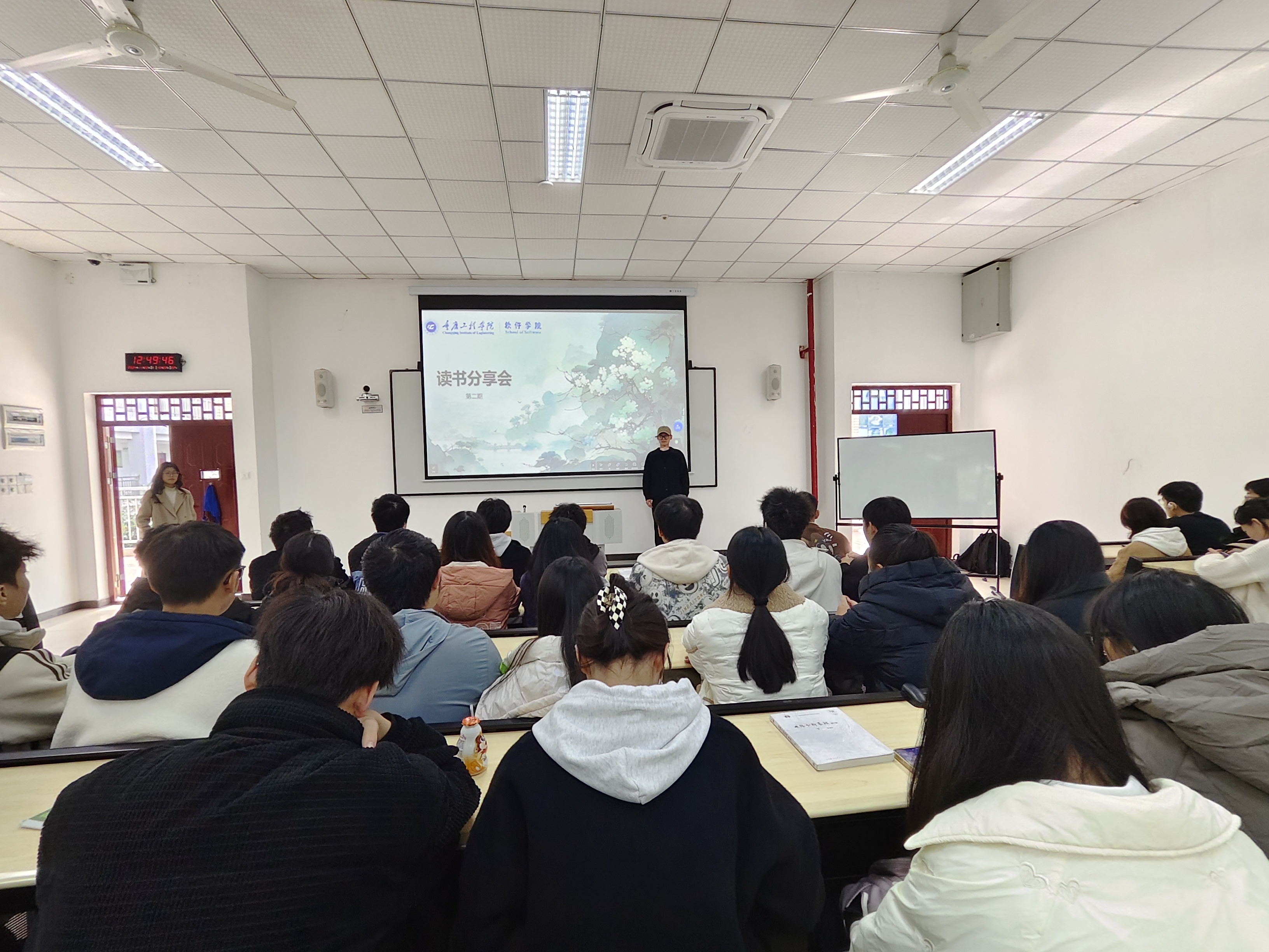 为让大家更能够体会文字内涵,领悟阅读的深远意义,提高同学们的阅读兴趣,软件学院学习部于11月22日下午12:30在六教202开展了第二期“读书分享会”主题活动,共有100余名重庆工程学院(南泉校区)的同学参加。