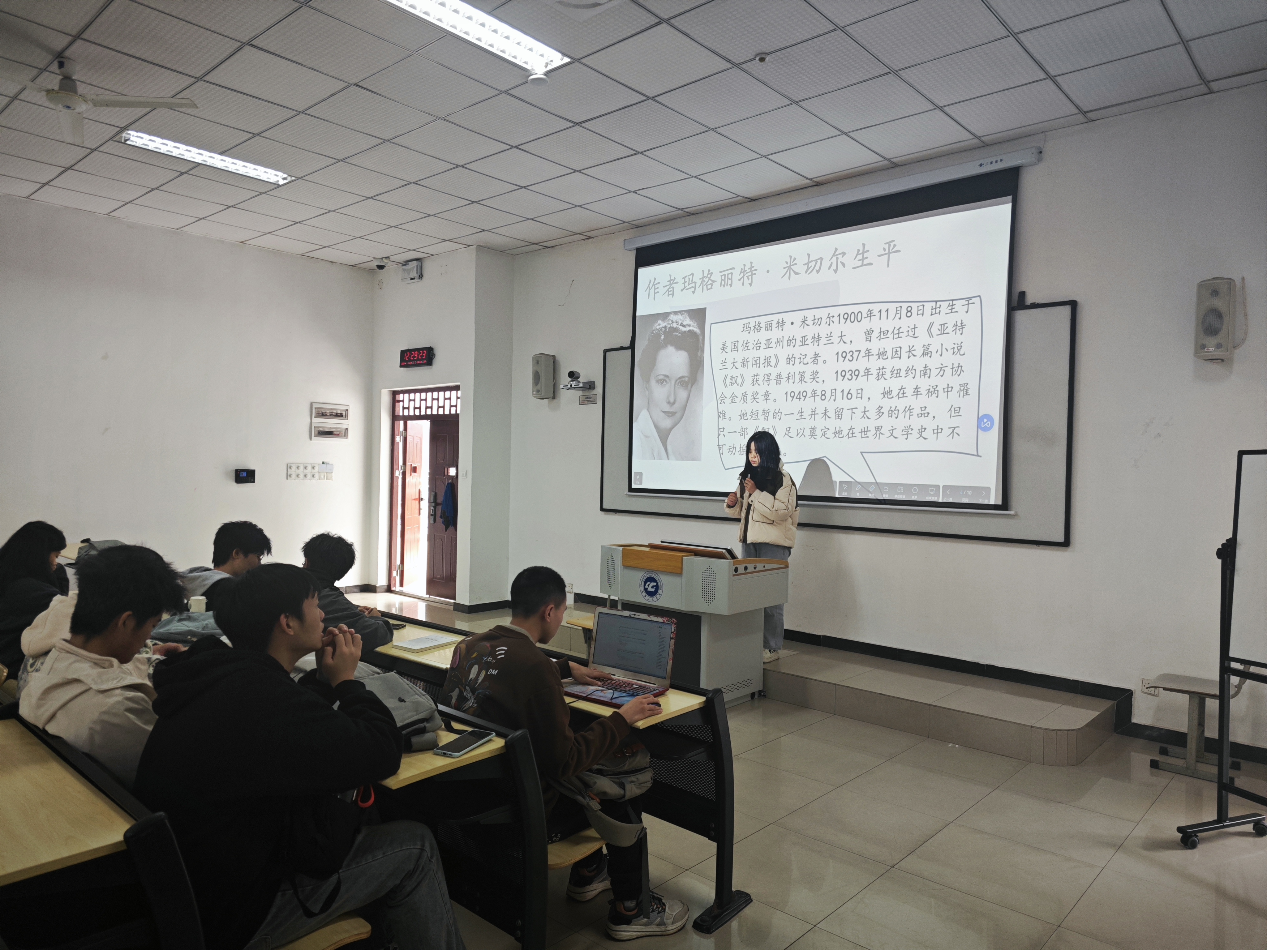 活动期间,“书籍分享人”分享喜爱的书籍,如《活着》,《解忧杂货铺》,《平凡的世界》。他们借助精美的ppt和适当的肢体动作,将书中故事情节和人物形象娓娓道来。最后,在讨论环节,同学们踊跃发表自己对经典书籍的看法,更是纷纷表示受益匪浅。