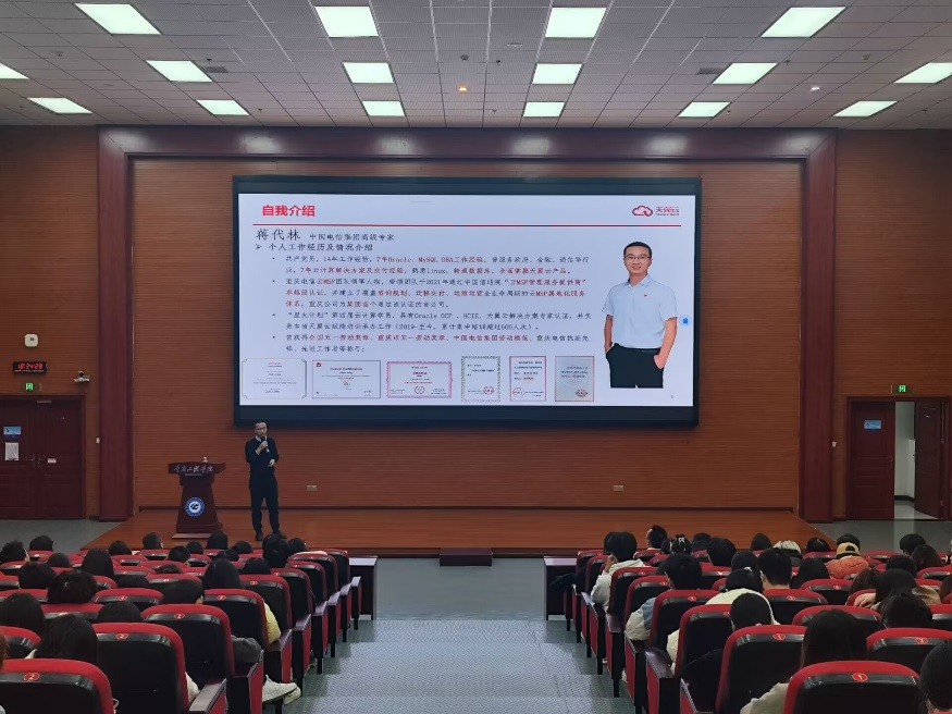 本网讯(图/文 校团委 刁杰)为深入学习贯彻创新驱动发展战略,大力弘扬劳模精神、劳动精神和工匠精神,进一步提升广大师生的专业素养与创新能力,激发师生积极探索数字化前沿领域新技术、新方法的热情,11月27日下午,我校邀请“全国五一劳动奖章”获得者蒋代林老师在南泉校区7807报告厅为同学们开展了题为“云启数智时代·匠铸创新未来”劳模专家讲座。各二级学院教师代表和学生代表共计约300人参与。