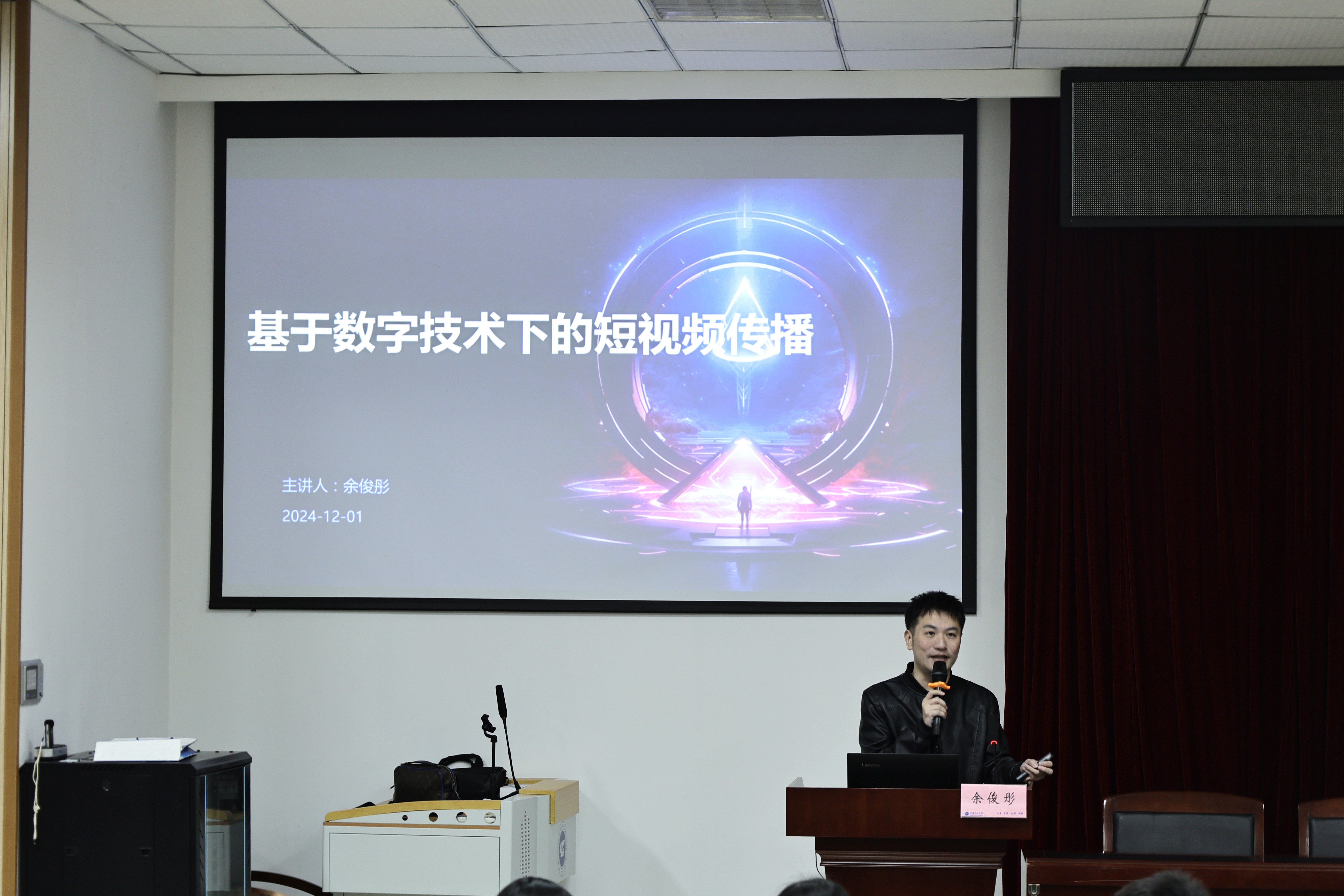 为切实提升学生对短视频传播领域的深入认知以及实践操作能力,数字艺术学院于2024年12月1日18:00-19:30在6302开展了“基于数字技术下的短视频传播”学术讲座。