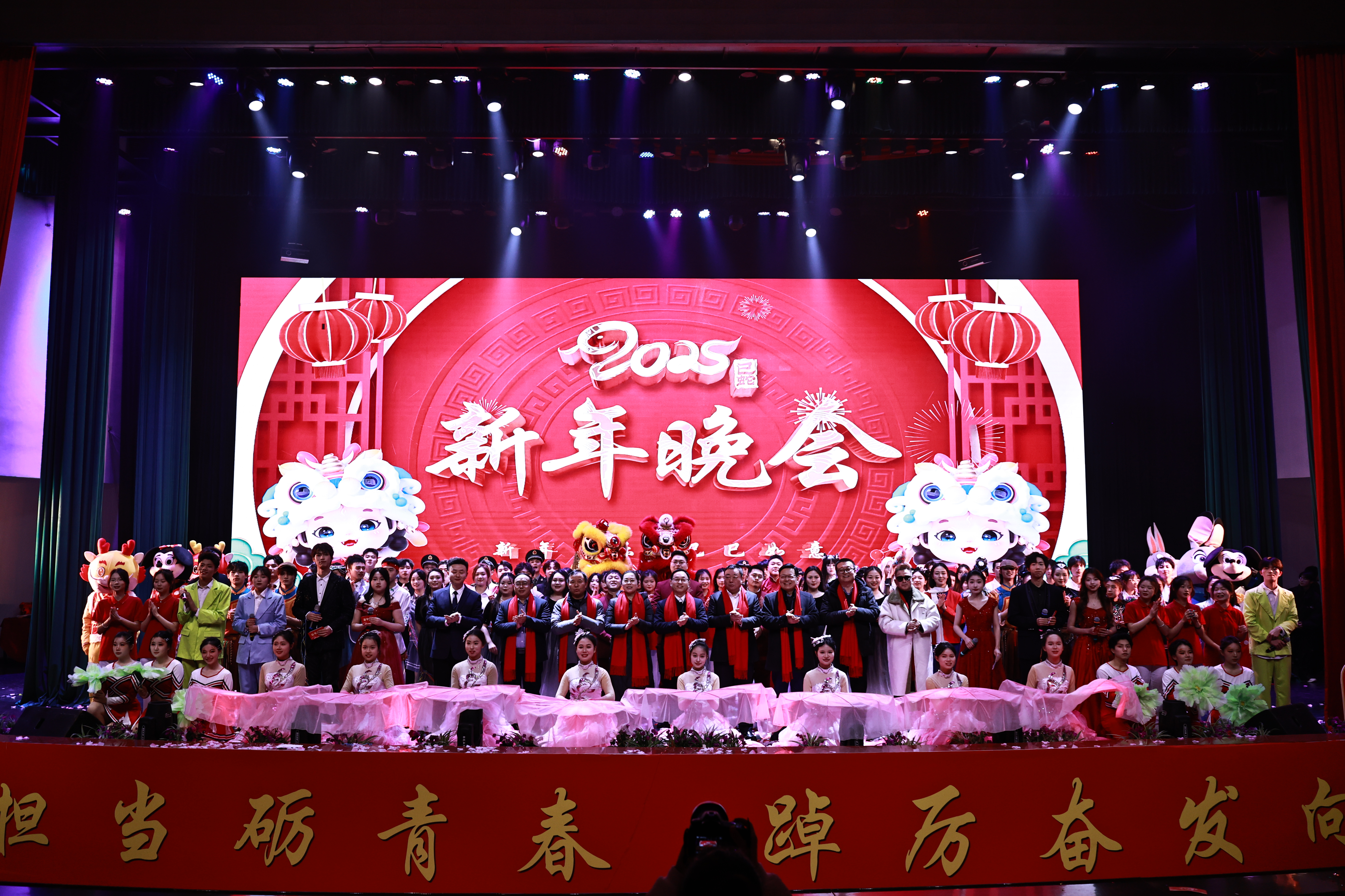蛇行龙步舞翩跹,青春飞扬谱新篇。12月20日晚,我校2025年新年晚会在南泉校区学术报告厅举行。全体在家校领导出席,离退休教职工代表、校友代表受邀参加,各二级学院党政领导、相关职能部门负责人及师生代表1100余人共聚现场。在热闹温暖的氛围中,全校师生共庆新年、展望未来。