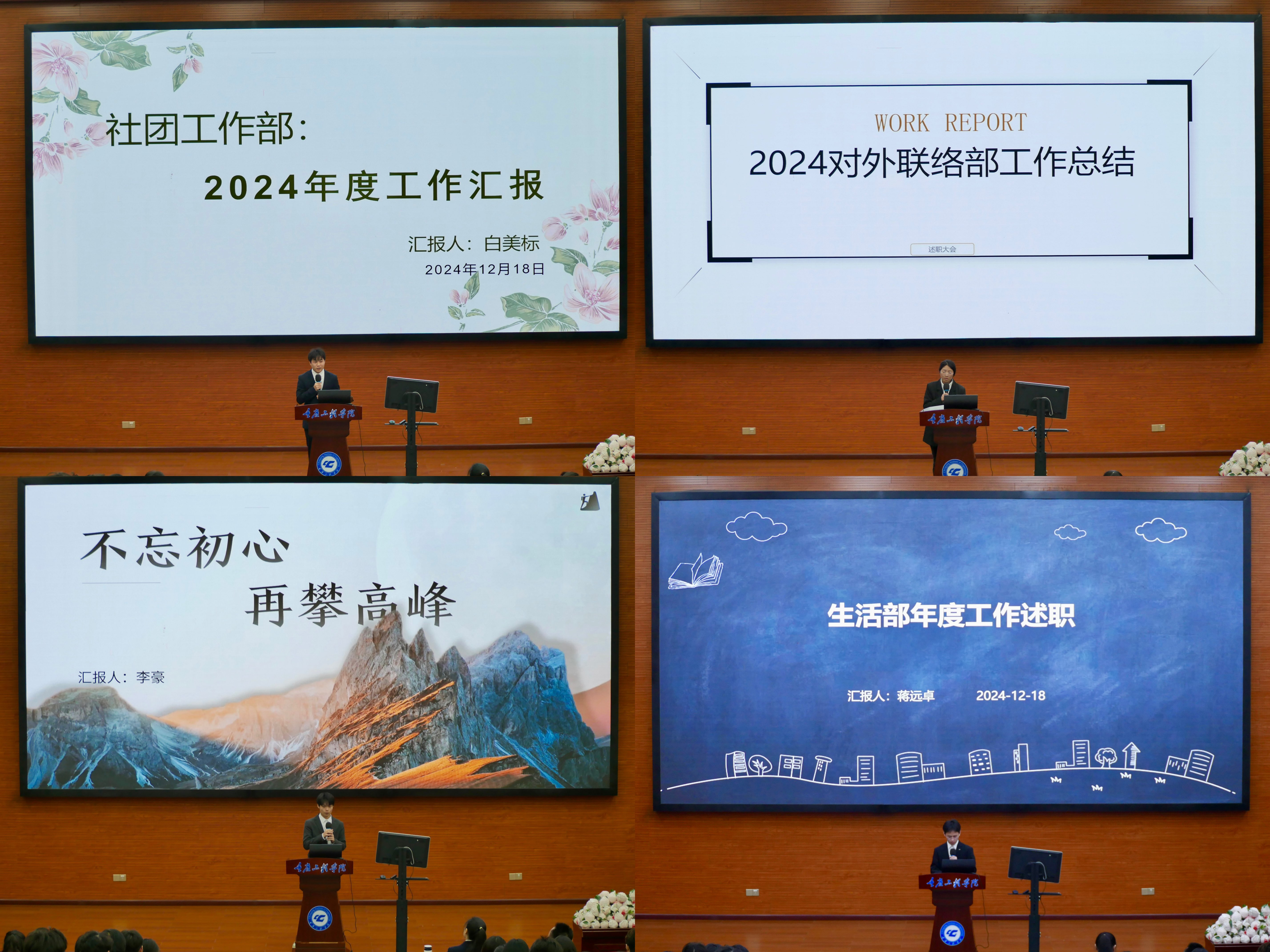 会上,团委学生副书记罗爱对团学各个部门在这一学年的活动和工作进行了总结。她提出了各部门需要改进的工作点以及后期的规划。而后,各部门就“工作完成情况”、“长处与不足”以及“未来规划”进行了详细的汇报。