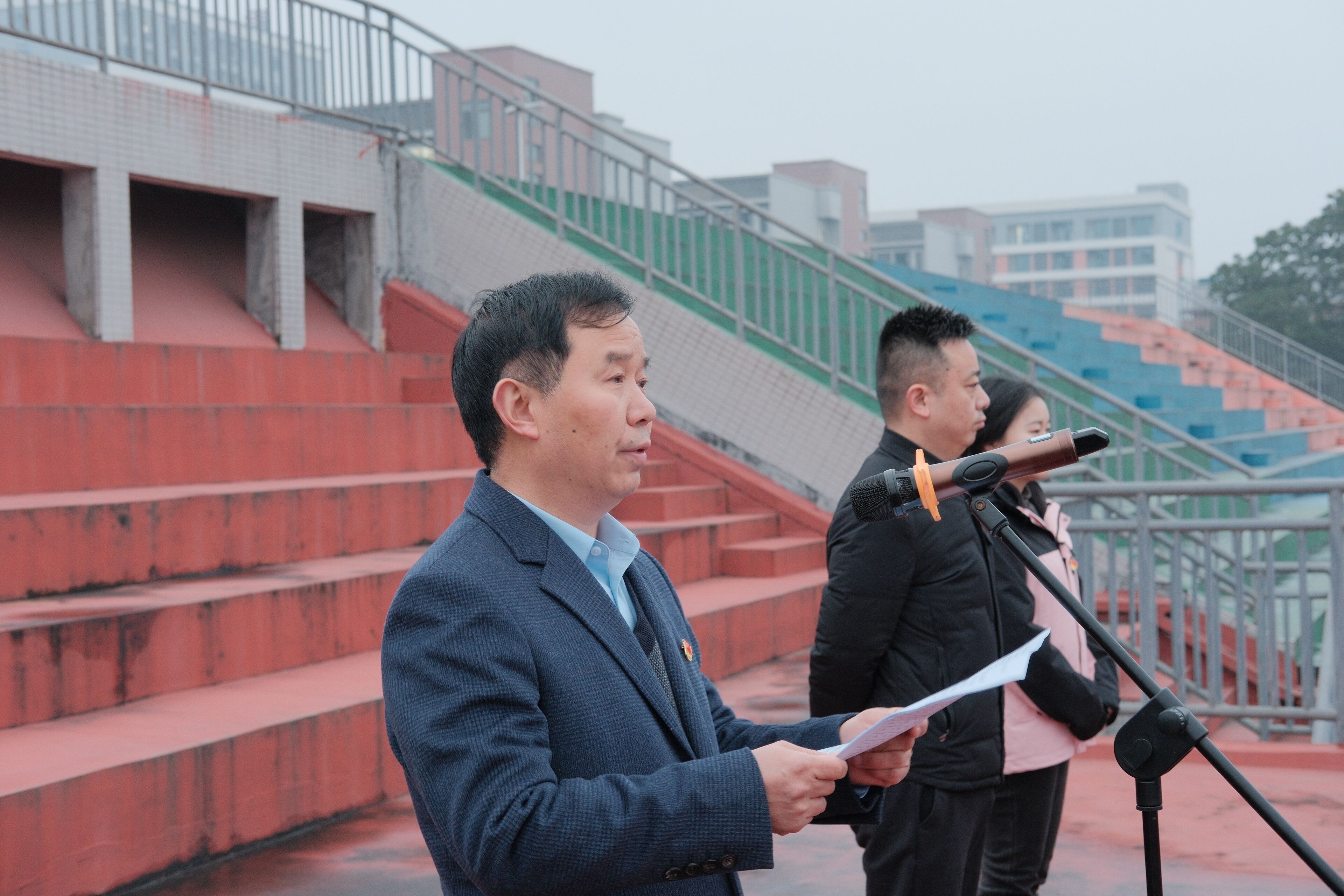 “春回大地东风暖,魅力重工绽新颜”。2月24日上午,我校在两校区足球场分别举行2024-2025学年第二学期第一次升旗仪式。学校党委副书记唐小勇、副校长王建东分别出席,学生处、校团委等部门负责人,各二级学院党组织书记、教师代表、辅导员代表、2023级和2024级全体学生共8500余人参加。