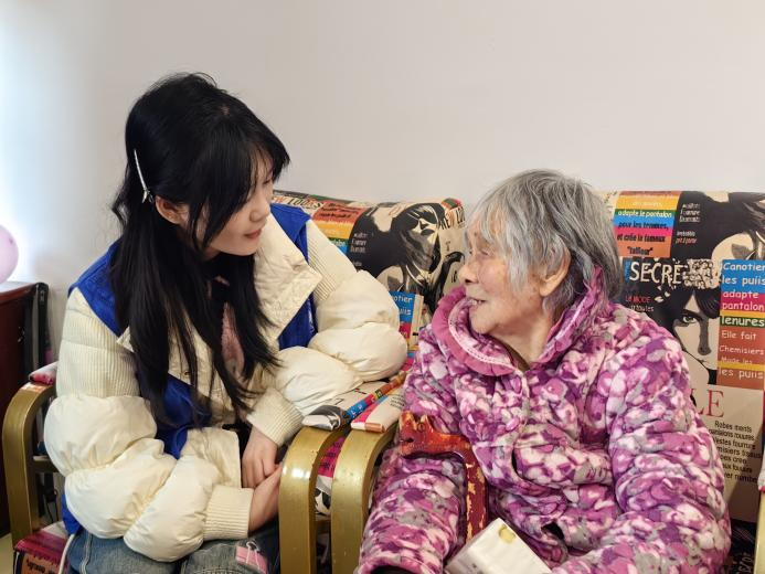 随后,志愿者们协助社区工作人员,为每位婆婆送上一束鲜花和精心准备的小礼品,向她们传递节日的祝福与关怀。志愿者与婆婆们手挽手共同唱响红歌,用歌声相互传递着爱与温暖。在与婆婆们的亲密互动中,志愿者们耐心询问她们的身体状况,认真倾听她们的生活需求,与她们分享生活的点滴,用实际行动向婆婆们传递着我们的温暖与关爱。