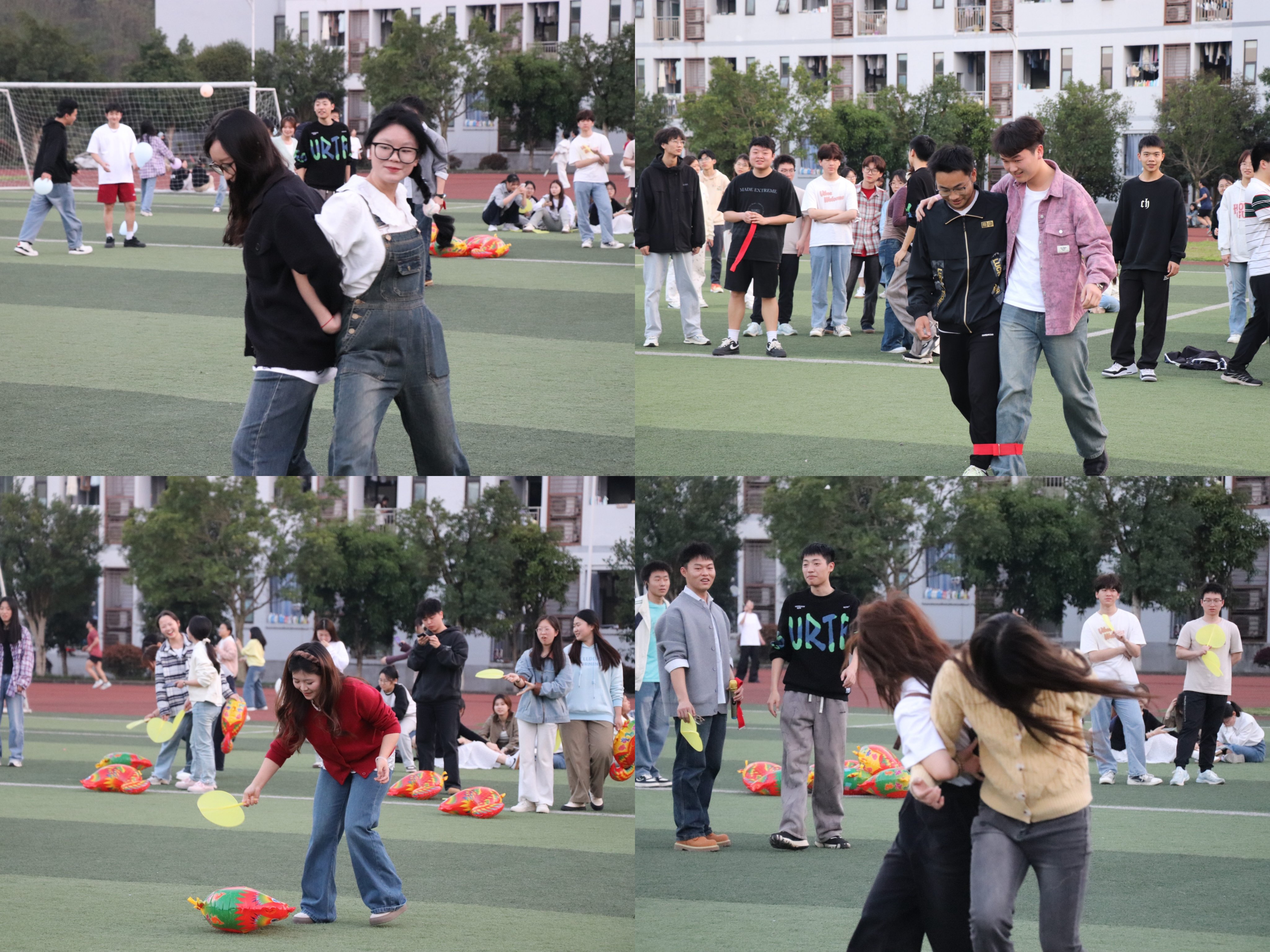 活动伊始,主持人热情洋溢地介绍了活动主题和规则,鼓励大家积极踊跃参与其中,大胆勇敢地展示自身风采。进入游戏环节,“两人三足”、“赶鸡入笼”、“背对背夹球”等一系列破冰游戏迅速打破了同学之间的陌生感,大家在轻松愉快的氛围中逐渐熟悉了彼此。最后的踩气球游戏更是将气氛推向了高潮,同组的同学配合默契,你攻我守。每一个趣味游戏都充分展现了同学们的团队精神和优秀的个人能力。此外,在自由交流环节,各学院同学围坐在一起,分享着自己的专业学习竞赛经历、团学工作经验以及学院特色与生活趣事,进一步加深了相互之间的了解。最后,此次联谊活动也在三方学院同学一起进行的温馨大合唱中落下了帷幕。