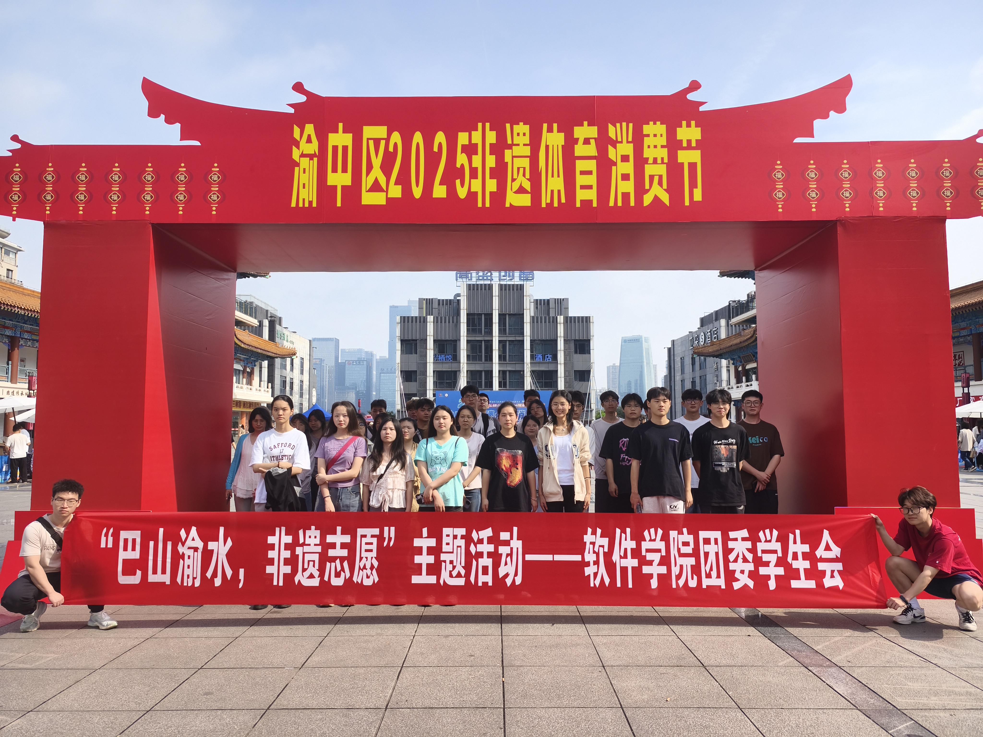 2025年4月19日,由重庆市渝中区文化和旅游发展委员会主办,软件学院学生会对外联络部联合多家单位承办的“巴山渝水,非遗志愿”主题活动在魁星楼大唐广场顺利举行。50名软件学院学子通过非遗体验、体育竞技、文化互动,深度感受巴渝传统体育文化的独特魅力。