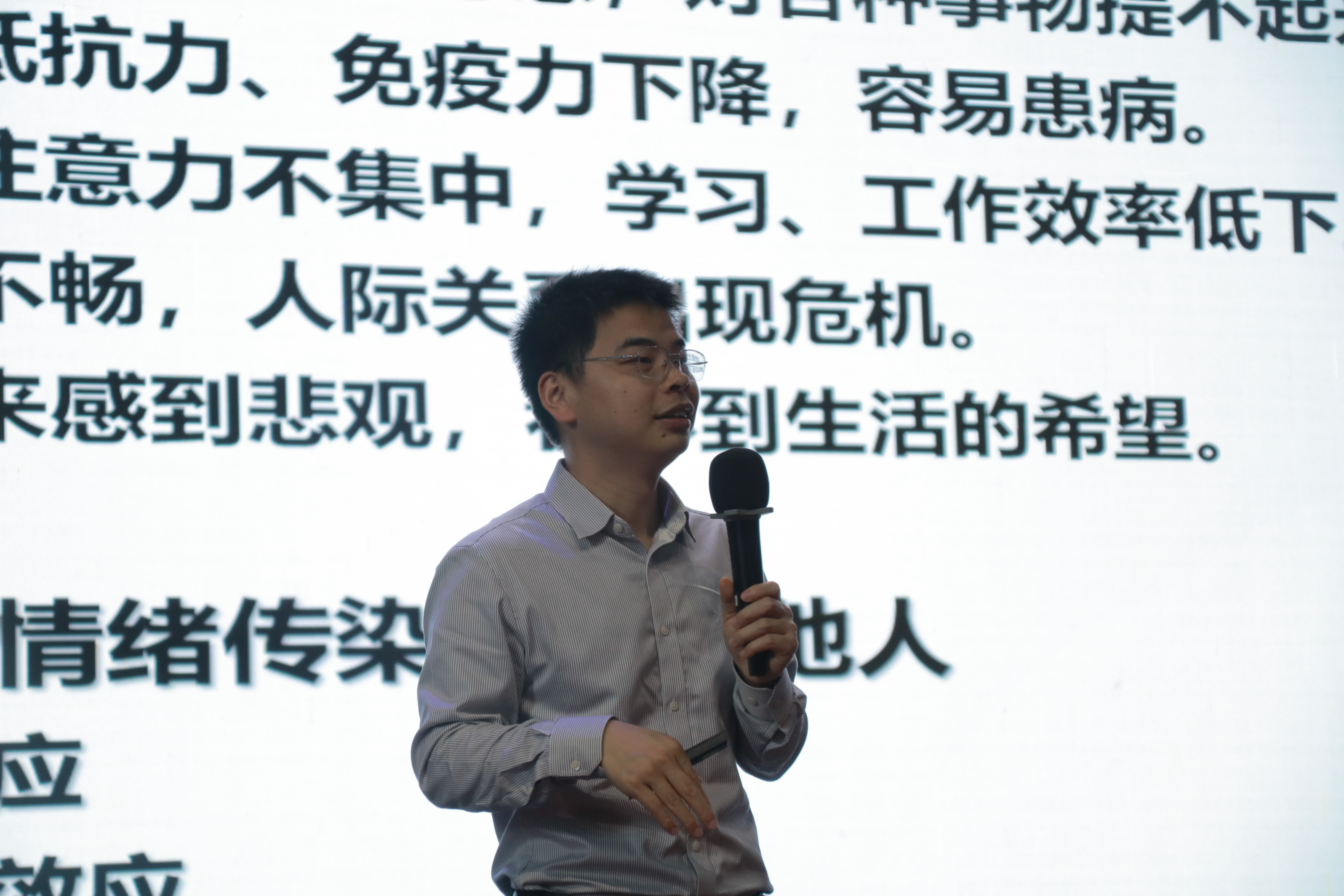 第二讲由国家二级心理咨询师叶绿老师接续,聚焦《学生骨干的压力熔炉:从自我情绪调节到朋辈心理危机识别》主题。叶老师创新采用"压力温度计"自测工具,结合"时间四象限法""情绪ABC理论"等实用模型,现场演示压力管理技巧。通过模拟"寝室矛盾调解""学业焦虑疏导"等校园典型场景,传授"观察-倾听-反馈"三步沟通法,强调学生骨干在"助人自助"中的角色定位。其分享的"心理急救箱"工具包——包含放松训练音频、心理援助资源清单等,为构建校园心理支持网络提供实操方案。