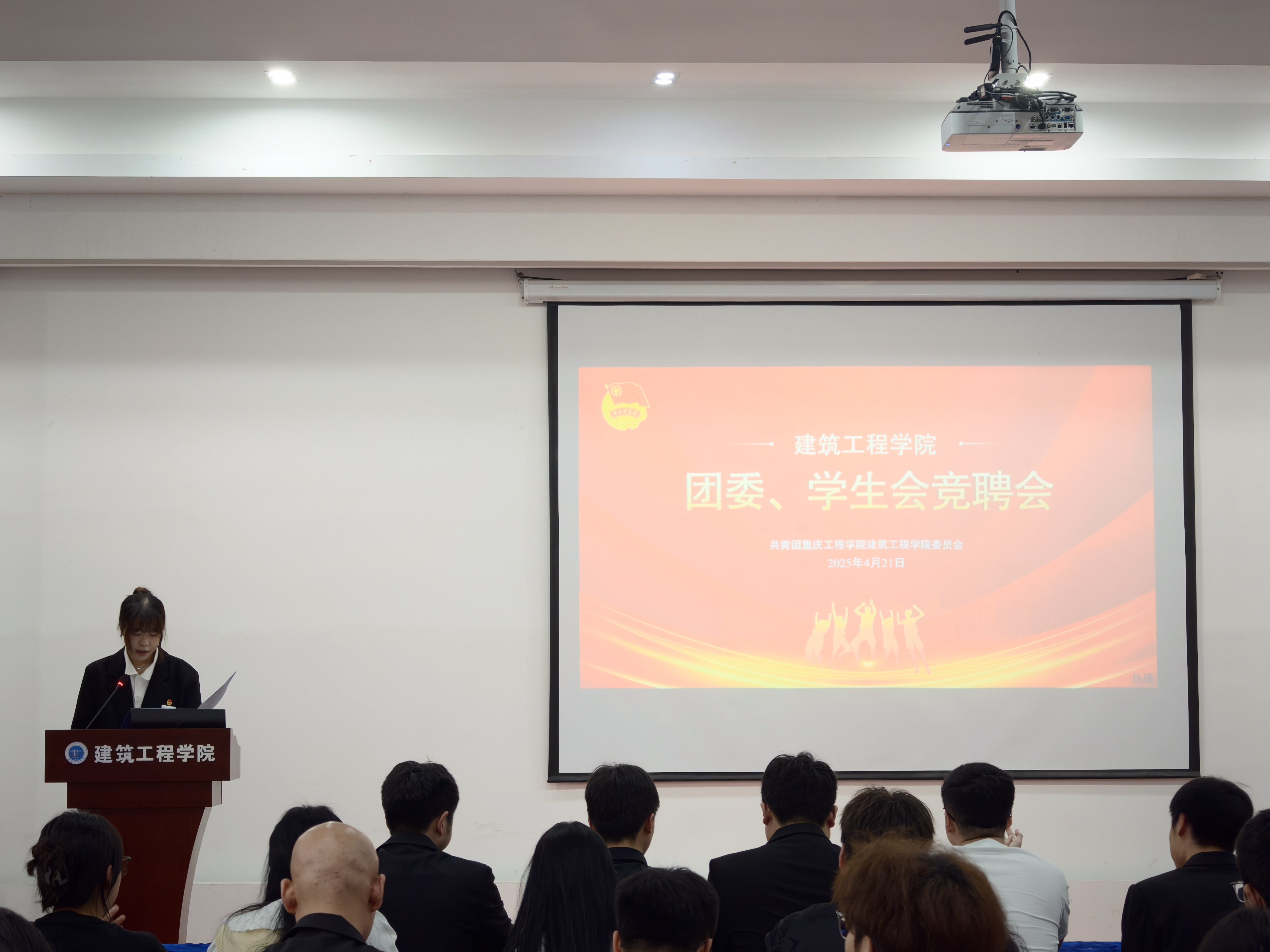 为进一步巩固并深化建筑工程学院团委、学生会工作,加强学生组织人才队伍建设,着力培养德才兼备的优秀学生骨干。建筑工程学院团委、学生会于 2025 年 4 月 21 日 18:30 - 21:30在建筑工程学院办公楼三楼多功能厅开展建筑工程学院第十届团委、学生会负责人竞聘会。此次竞聘会建筑工程学院分团委书记张徐宇,建筑工程学院团委、学生会全体成员参与,并邀请管理学院、软件学院、新媒体电商学院学生骨干代表出席。