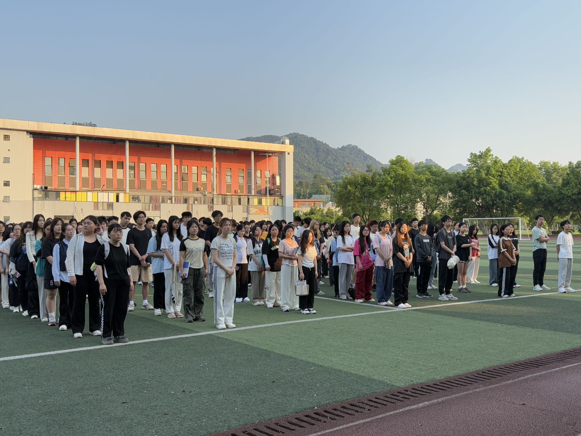4月21日清晨,新媒体电商学院在操场举行了主题为 “韶华正茂,奋斗点亮青春路”升旗仪式。此次升旗仪式由新媒体电商学院党总支副书记曾艳灵、分团委副书记石超伟、思政教师兼任辅导员安凌老师、23 级带班辅导员、新媒体电商学院团委学生骨干共同参与。