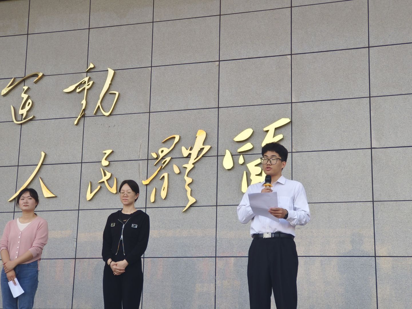 升旗仪式开始。国旗护卫队的同学们迈着整齐有力的步伐护送国旗走向升旗台全体师生肃立,行注目礼,高唱国歌。紧接着21级学生代表陈子阳同学发表了国旗下的演讲。他用自己的经历诠释了“四个早”的意义,激励同学们在青春路上奋勇逐梦。随后,贺靖杰分享他的奋斗历程,他们的经历证明只要行动并坚持,梦想并不遥远。紧接着教师代表安凌老师发表讲话,她鼓励学生奋斗是青春最靓丽的颜色。