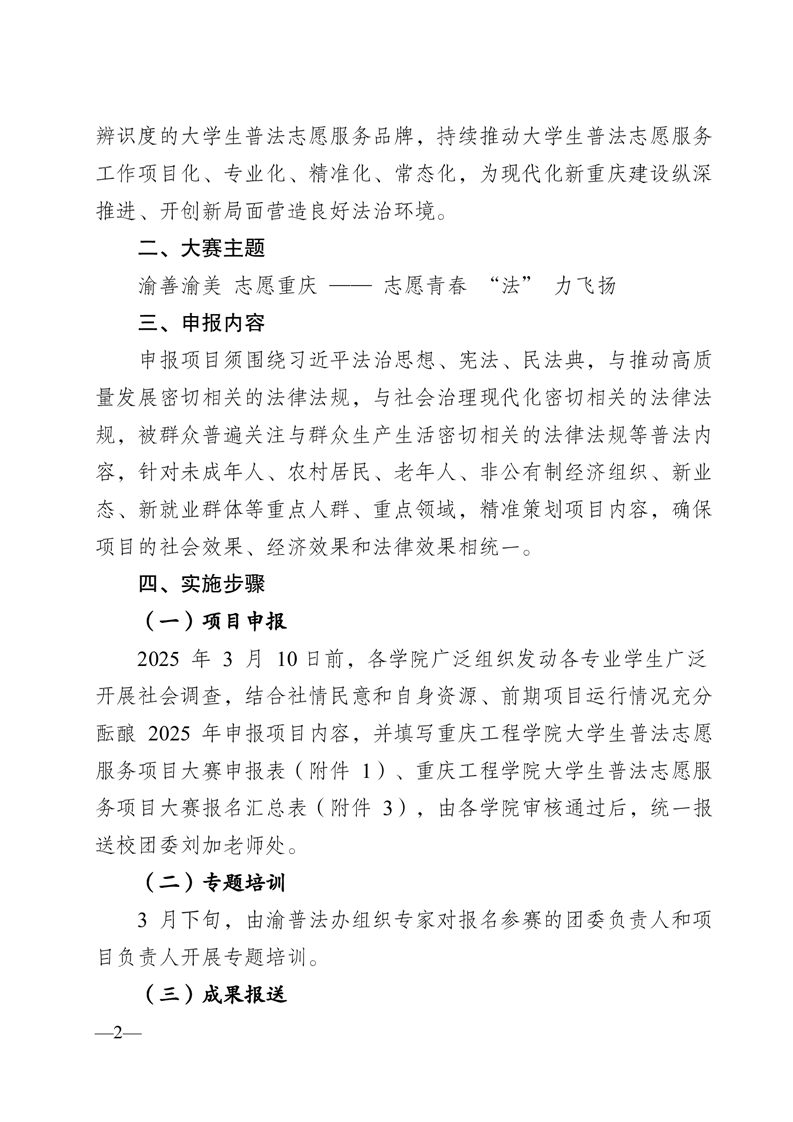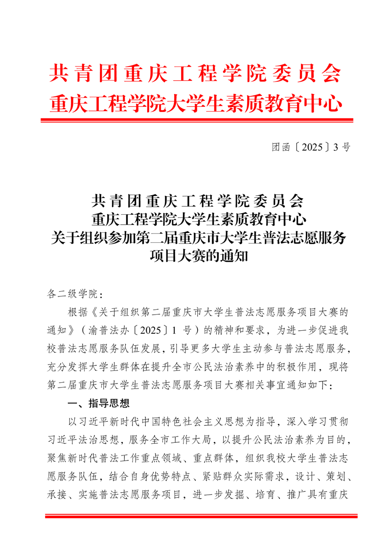 关于组织第二届重庆市大学生普法志愿服务项目大赛的通知