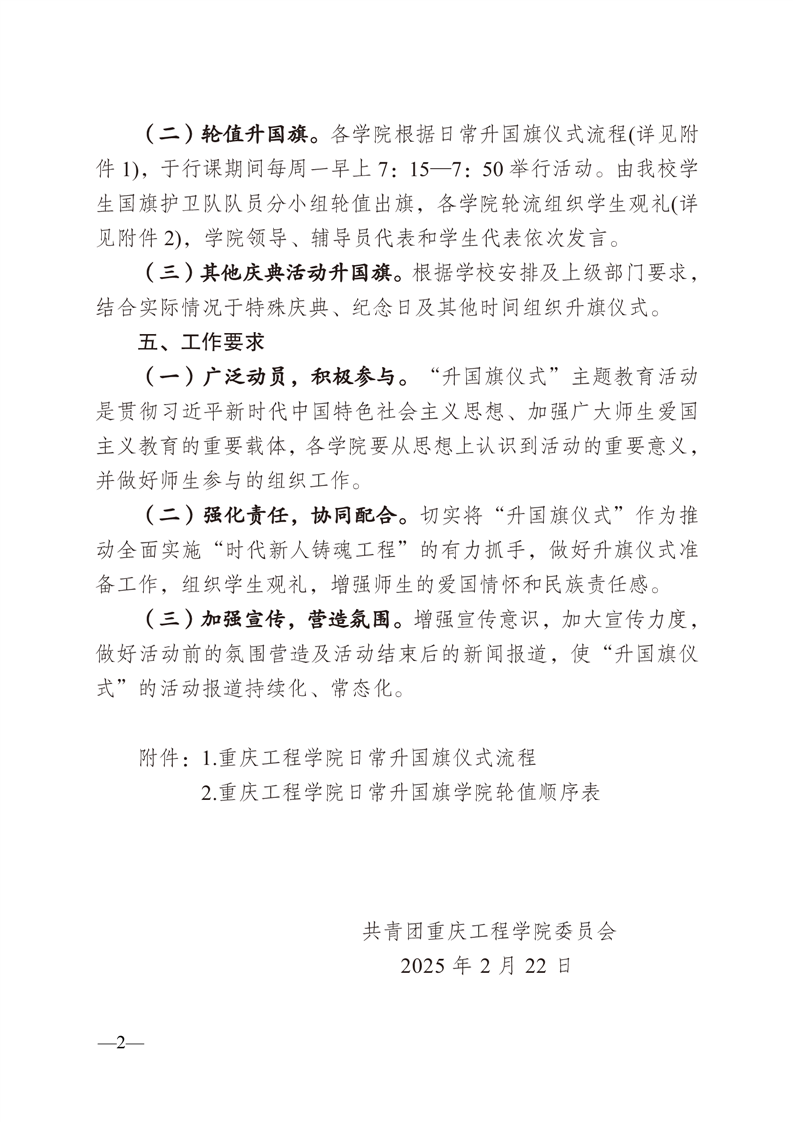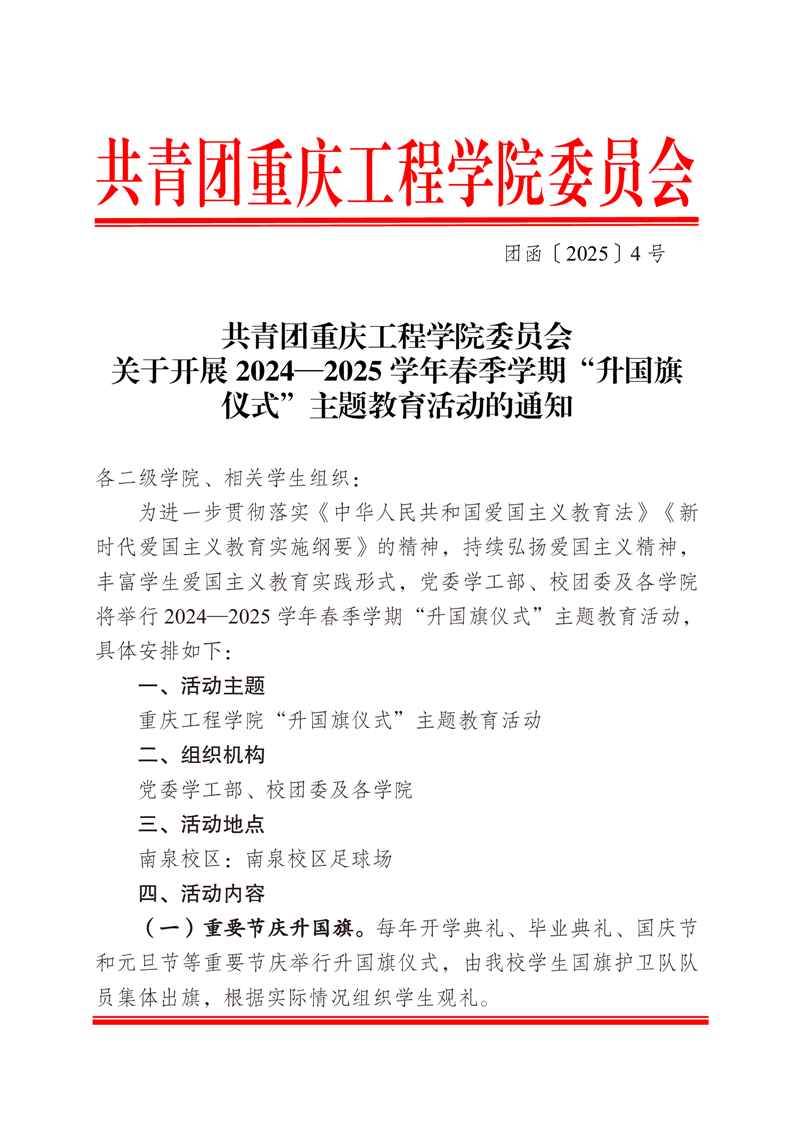 重庆工程学院团委便函2025-4号关于开展2024-2025学年春期“升国旗仪式”主题教育活动的通知