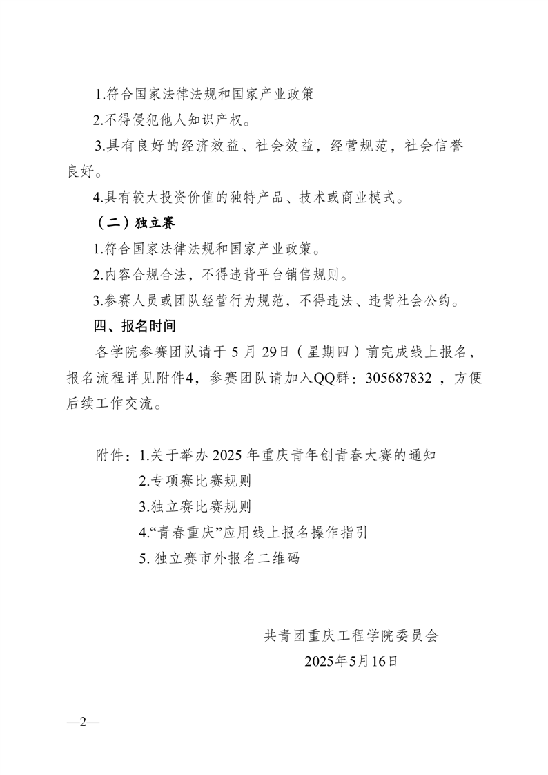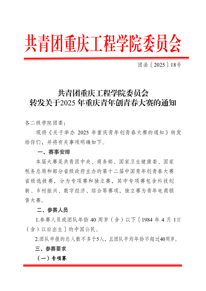 共青团重庆工程学院委员会关于转发2025年重庆青年创青春大赛的通知