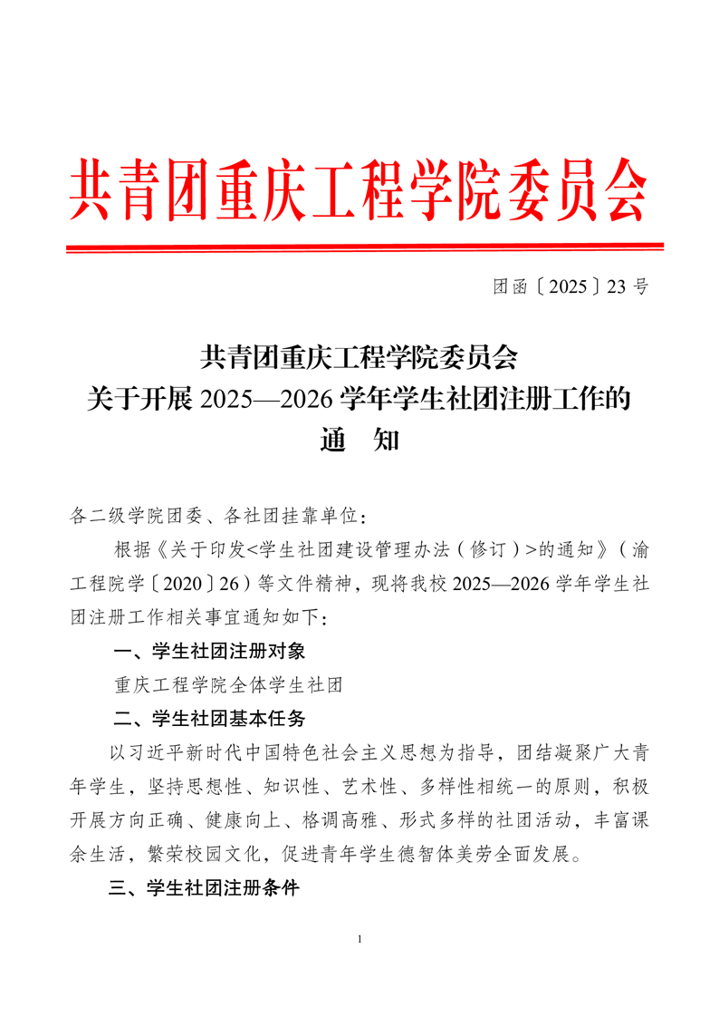 关于开展2025—2026学年学生社团注册工作的通知