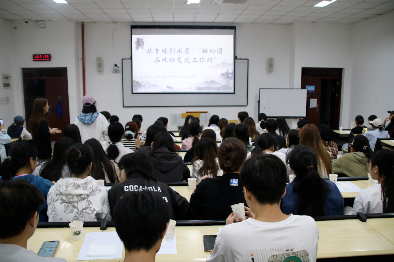 为弘扬中华优秀传统文化、增强重工学子民族自豪感与文化自信,同时以艺术浸润筑牢廉洁防线,2025年10月14日晚6:30,由共青团重庆工程学院委员会主办,校团委青马工程·菁英团校、纪检监察部承办,学生会学习部协办的第二期“一研一行”主题团建活动——从青绿到水墨:“解码国画风格变迁工坊”在六教201教室顺利开展。本次活动由纪检监察部吕兰主持,共100余名学生骨干参与。