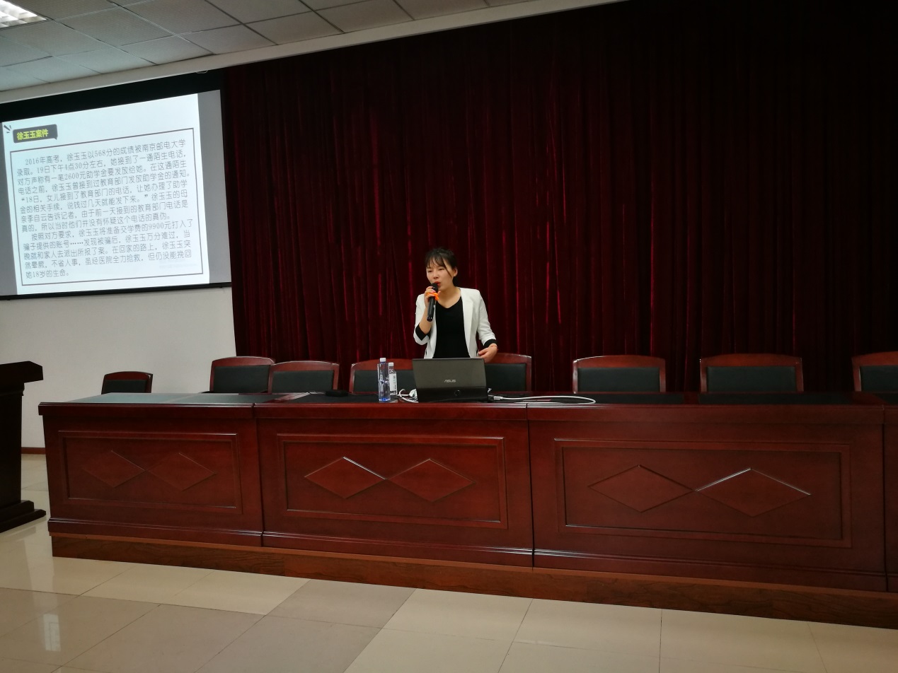 本次讲座由西南政法大学民法学博士高悦女士主讲,高博士主要研究网络和个人信息法,她列举了大量发生在大学生身上的网络诈骗案例,并利用大数据对网络诈骗进行了分析,让学生了解了不法分子实施网络诈骗的种种伎俩和手段,并传授给学生很多防范技巧。