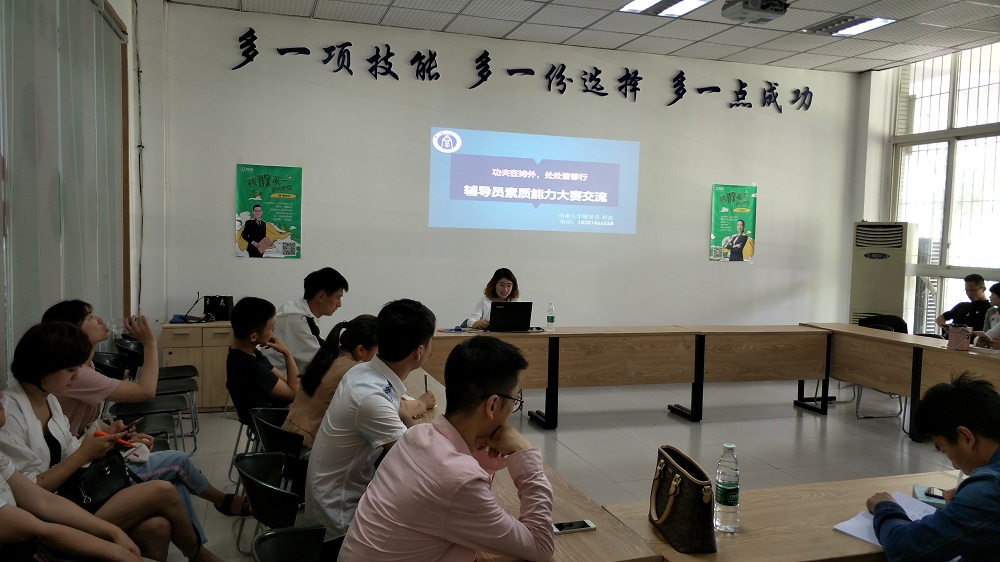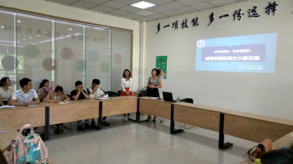 本网讯(学生处)5月4日下午,以“功夫在诗外,处处皆修行”为主题的我校2018年第二期辅导员俱乐部沙龙活动成功举办。本次活动由学生工作处、辅导员俱乐部主办,由西南大学研究生辅导员、第五届全国高校辅导员职业能力大赛第三赛区复赛二等奖获得者胡孜主讲,素质教育中心副主任邹春霞,南泉校区全体辅导员老师参加了培训。