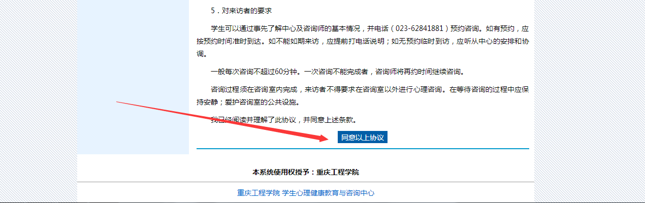 6.预约咨询前请认真阅读咨询相关协议,再进行下一步操作。
