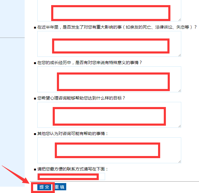 9.为了咨询的有效沟通,预约咨询前,请尽量填写以下内容,方便咨询师更快地了解你的状况,并提交。(预约时,请务必填写你的有效联系方式,方便咨询中心确认预约)