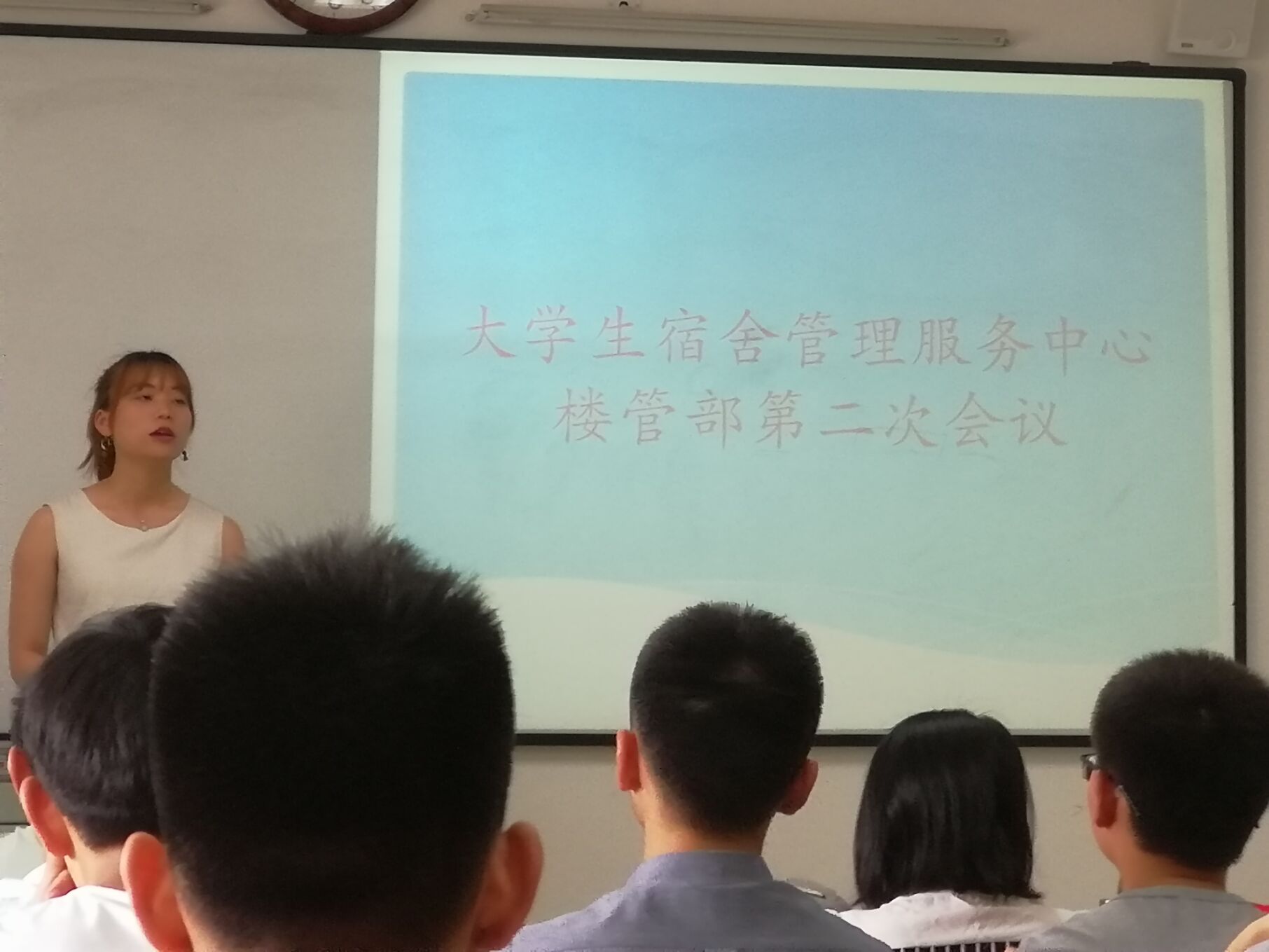 2018年5月8日,由宿舍管理服务中心召开的楼管部第二次会议于六教121顺利举行。本次参会人员有楼管部部长曹会义、容园4号楼长罗永利、办公室主任黎卫东及全体宿舍管理员,本次会议由曹会义主持召开。