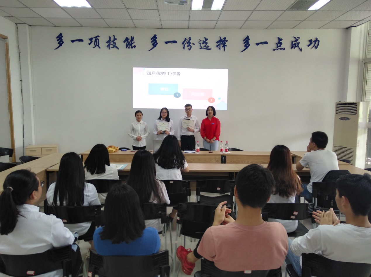 随后周梨就部门近期工作和任务作了具体的安排和部署。强调学生助理需加强自身的责任意识和服务意识,全面提升各项工作能力。会议结束前,唐老师对大学生事务管理服务中心三月、四月优秀工作者进行了颁奖。