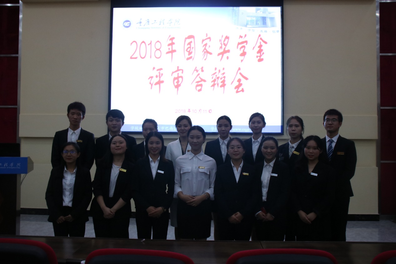 本网讯(大学生资助管理中心)2018年10月11日下午18点,重庆工程学院2017~2018学年度国家奖学金评审答辩会在我校阶梯报告厅隆重举行,各二级学院书记及学工主任、教务处、财务处、学工部、校团委等职能部门负责人出席并参与评审。
