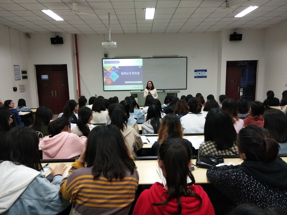 本网讯(素质教育中心)为了普及女性知识,唤醒女生的自我保护意识,提高面对危险情况时的防范能力,引导女生在自我教育中成熟、成长,大学生素质教育中心特邀请重庆工程学院心理健康与咨询中心的张琼老师于2018年10月17日晚上6点30分在第六教学楼201开展了“聪明女生早知道——女生安全教育”专题讲座。