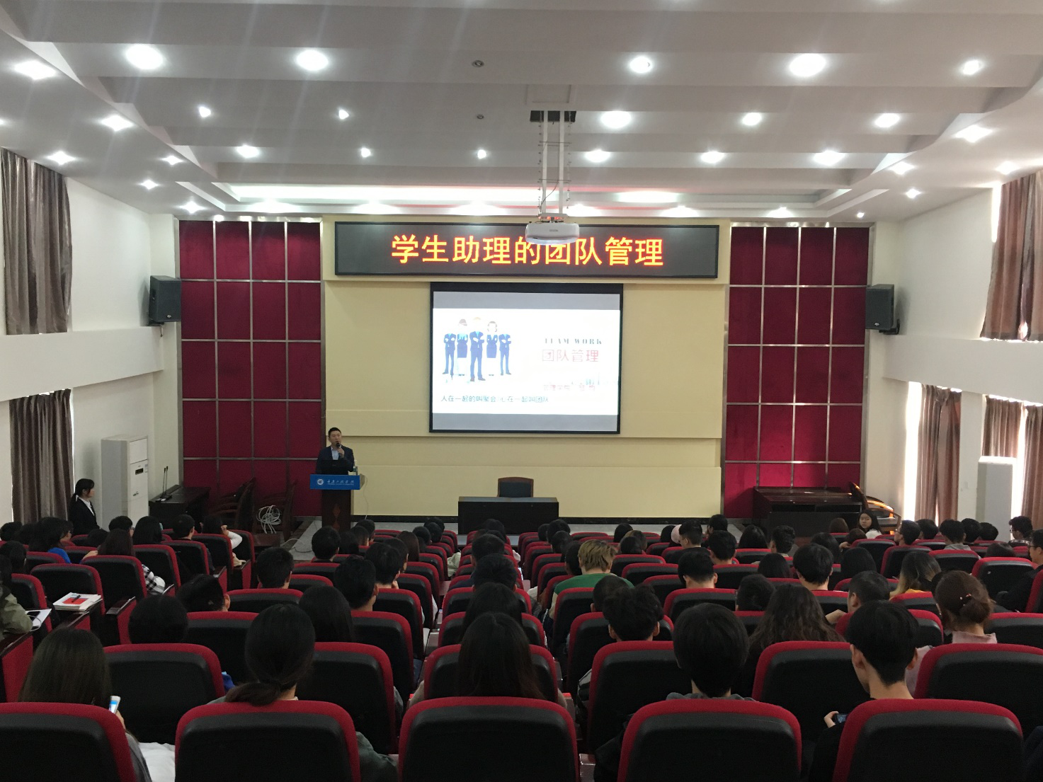 本网讯 (大学生助理事务工作委员会)学生助理团队管理培训于10月31日下午在行政楼阶梯报告厅成功举办。本次活动由素质教育中心主办,大学生助理事务工作委员会承办的,我校助理团队工作人员和各二级学院学生助理干部共200多人参加了活动。