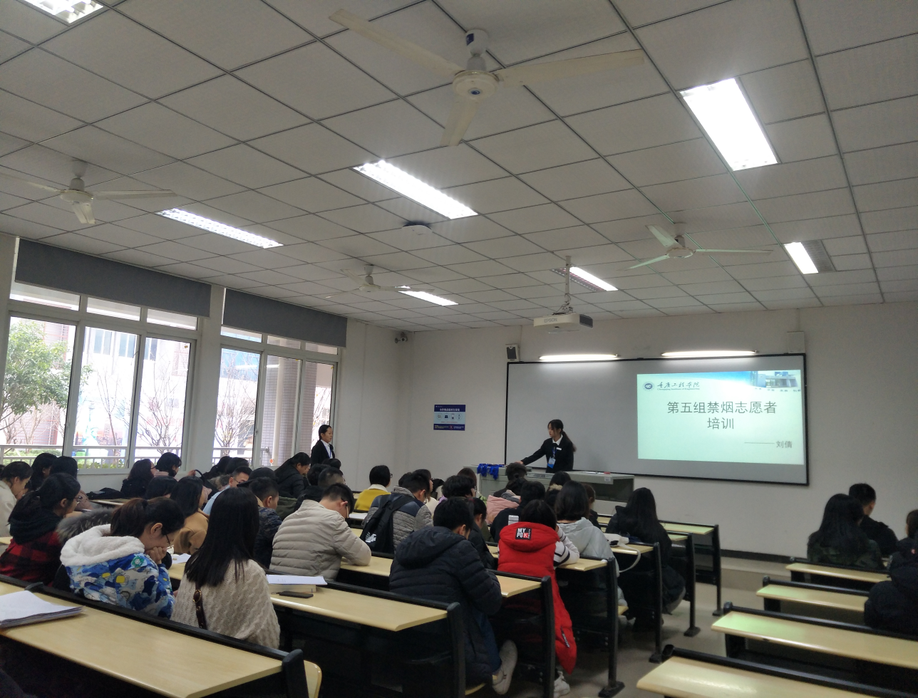 本网讯(文/冉啟君 图/冉啟君)为近一步完善与落实校园禁烟制度,使校园形成良好的无烟环境。重庆工程学院禁烟志愿团第五小组全体成员2018年11月19号中午12:30六教102开展“清新校园,从我做起”第五组禁烟培训会议。