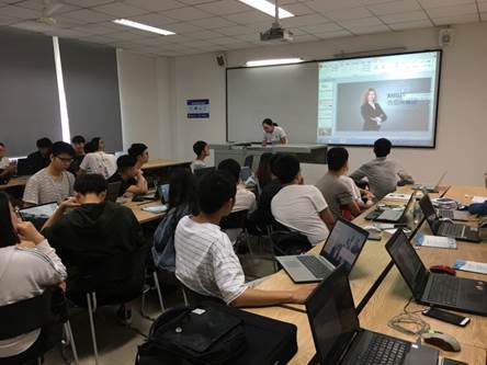 培训一开始,夏副教授就通过两个实例问题引入此次培训主题,说明了做好PPT对于我们学习工作的益处。紧接着是理论知识讲解,从“观点可视化、以工匠之心做PPT”两个方向讲述了要以图像化、图表化的方式制作自己的PPT内容,并介绍了多种方法下载实用高效的PPT模板。最后转战实际操作,夏教授通过案例分析、讲解原理再到一步一步实战,进行了精彩的讲述,逐步拉近了学生助理们与PPT大神的距离。整个培训中,夏教授语言幽默,案例丰富,赢得了同学们的阵阵掌声。