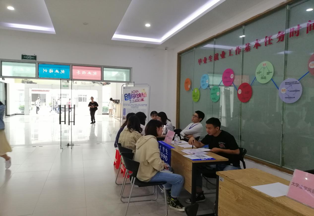 本网讯(大学生素质教育中心)2019年9月18日下午, 由大素质教育中心主办的2019-2020学年南泉校区学生助理招聘会在大学生服务中心一楼大厅如期举行。