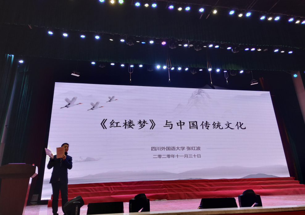 本网讯(图/文 大学生素质教育中心)2020年11月30日下午,大学生素质教育中心邀请了北京大学文学博士,四川外国语大学中文系副教授,古代文学、汉语国际教育专业硕士生导师张红波教授在学术报告厅开展了题为“《红楼梦》与中国传统文化”的专题讲座 。