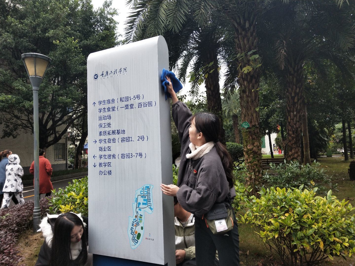 其次,学生党员主动参与学生公寓公共区域的环境扫除维护工作,包括捡拾公寓周边绿化带内白色垃圾;清洗路牌,铲除墙面“小广告”;规范楼栋内(前)车辆摆放,规劝违规违章停车同学;帮助宿管老师清扫值班室、学生党员工作站办公室等公共区域等内容。