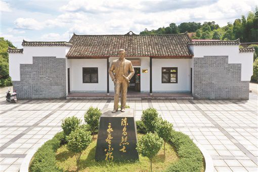 6月13日,浏阳市镇头镇,陈昌烈士生平事迹陈列馆前的陈昌烈士铜像。湖南日报·新湖南客户端记者 范远志 摄