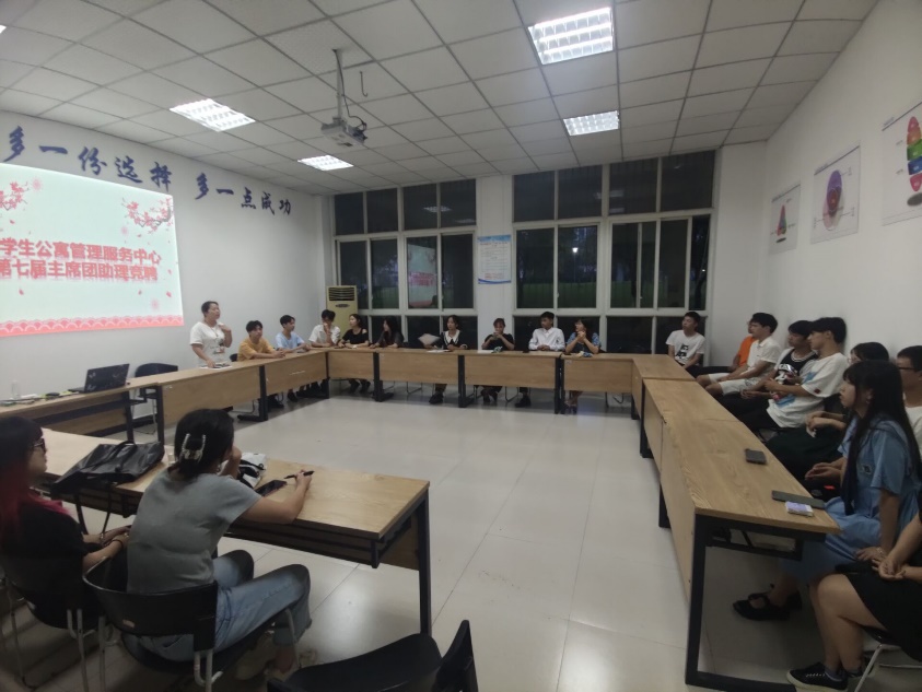 2021年8月31日晚18:30,重庆工程学院公寓管理服务中心于大学生服务管理中心1-3举办了第七届主席团竞聘活动。参加本次活动的有公寓管理服务中心全体干部。