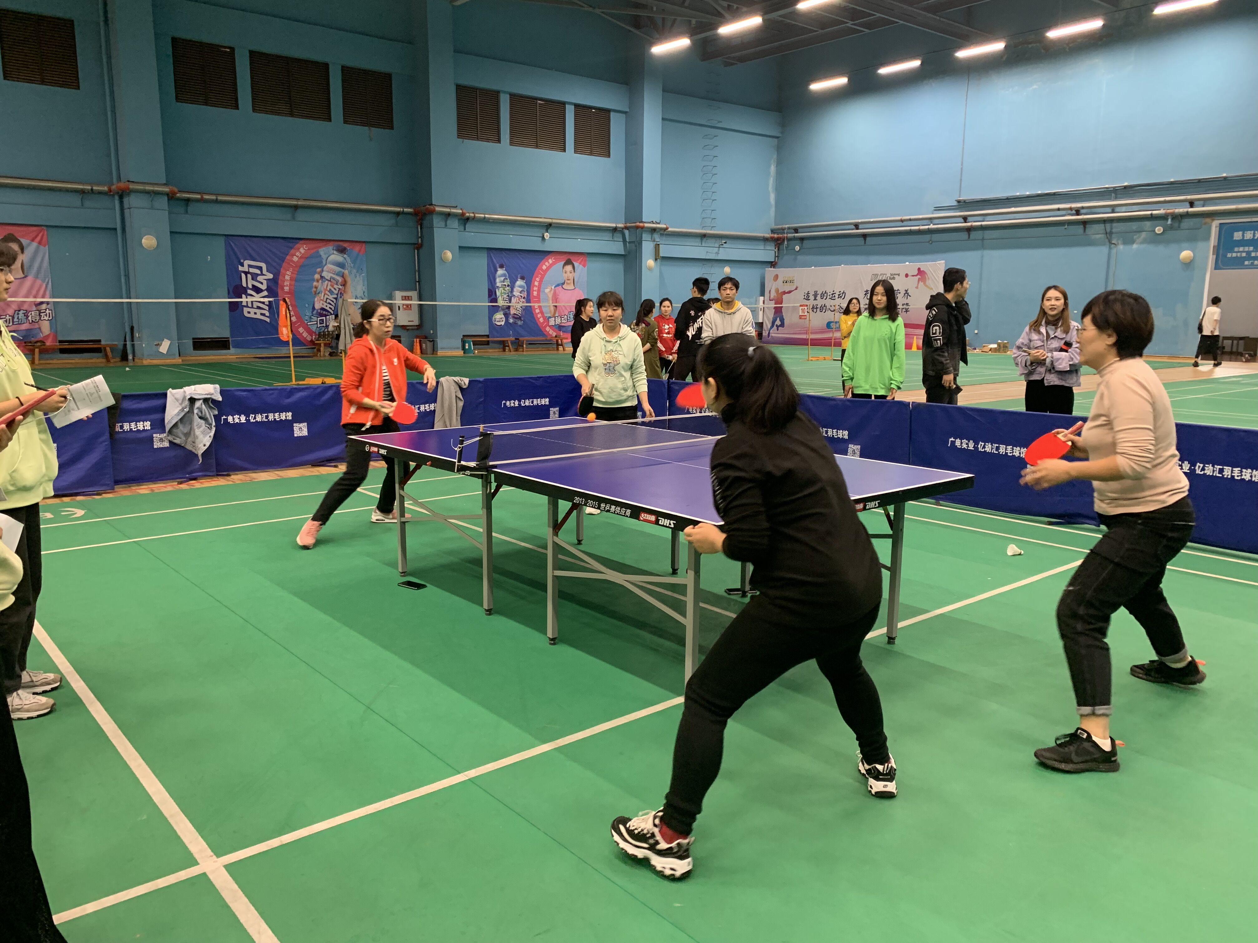 本次活动共有四个比赛项目,分别是“篮球友谊对抗赛” “乒乓球双打” “羽毛球双打” “桌球”。参加活动的老师分组搭档、默契配合,运动场上,充满着欢声笑语。