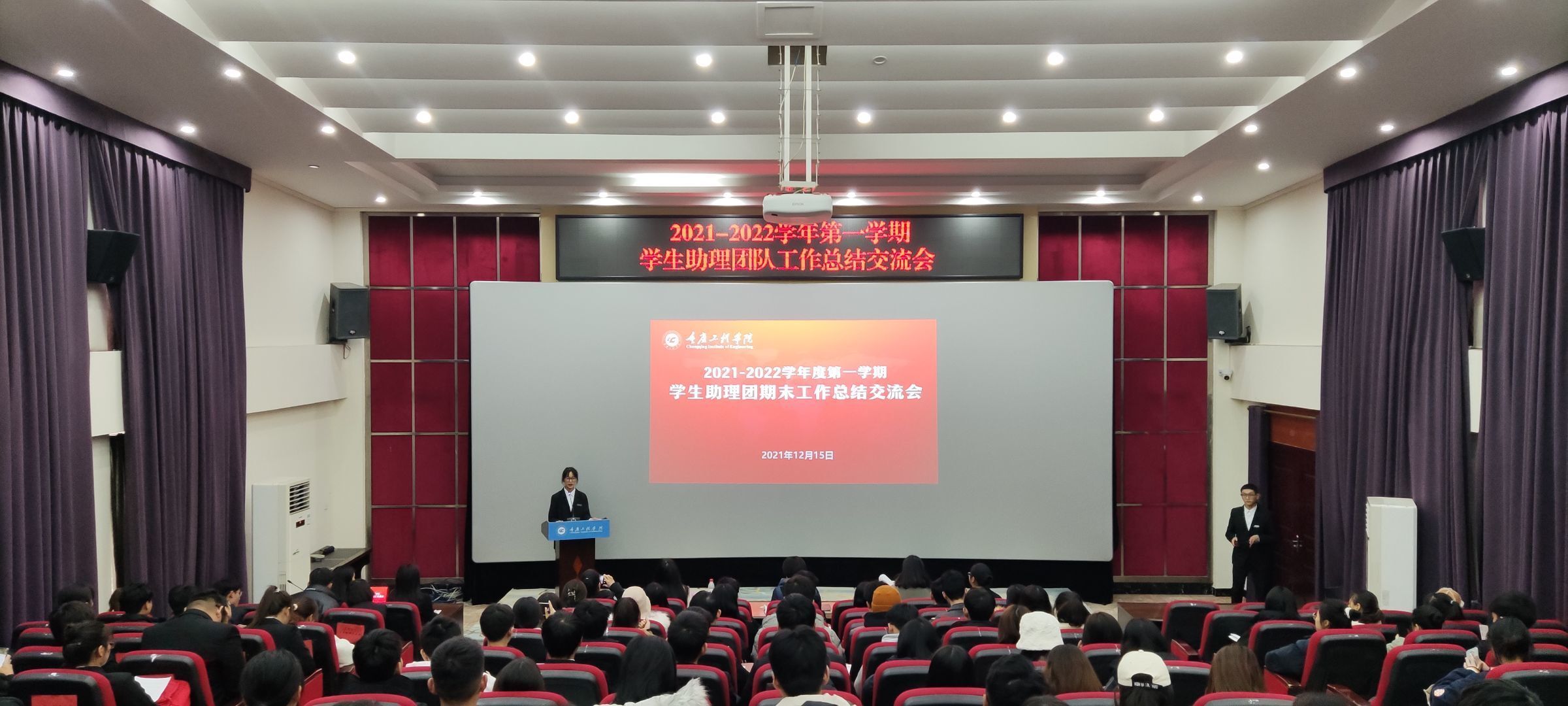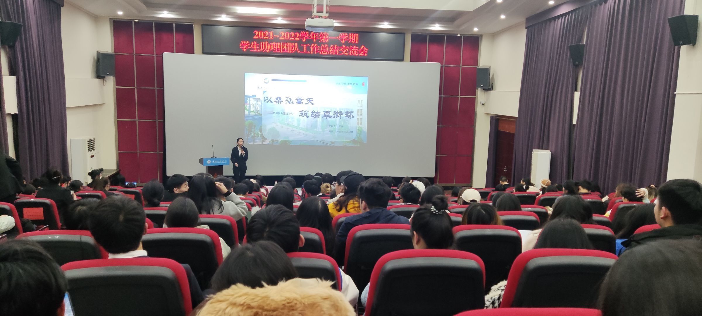 (图/文 学生处熊佳)为推动我校学生助理工作稳步前进,提升学生实践工作能力,达到互融互通、交互学习,更好的服务学校、服务师生的目的。2021年12月15日14时,我校在行政报告厅组织开展了2021年-2022学年第一学期学生助理团队工作总结交流会,南泉校区29个学生助理团参与工作汇报,100余名学生代表参会。