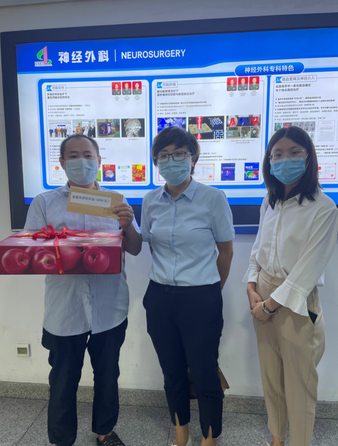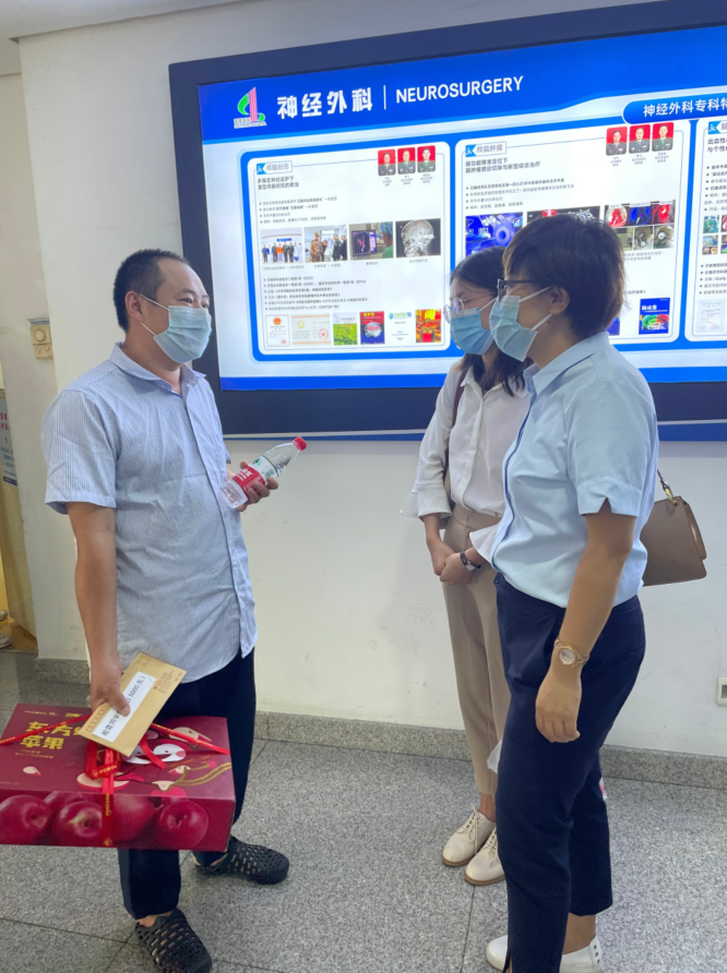 9月8日下午,学工部部长黄燕、双桥校区辅导员陈小丽和资助中心赵荷妍老师前往西南医院探望殷霞同学,由于医院严格的病房管理规定,三位老师只能通过线上不直接接触的方式——视频连线慰问病房中的殷霞同学。黄部长代表学校将5000元临时困难救助金递交到了殷霞父亲手中,表达了真诚的问候和关怀,并鼓励殷霞同学乐观积极地接受康复治疗,殷霞的父亲感动到热泪盈眶。与殷霞的父亲谈话中了解到,因为医院只能一个人看护,父亲也进不了病房,都是递送一些日常的必需用品,每天在走廊通过视频给女儿打气,默默守候着,晚上就在医院打地铺、睡地板,家里已经山穷水尽了。