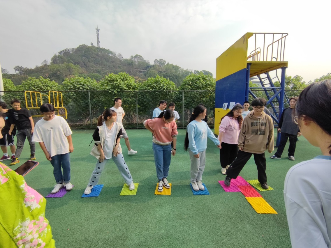 为了进一步促进团队成员的融合,增进团队成员的感情,2022年10月22日下午2点,大学生服务中心在学校素质拓展中心举办了大学生服务中心 “益智趣,促团结”10月团建活动,活动由大学生服务中心负责人刘丹主持。 首先,活动开始前,主持人为中心成员讲解游戏规则,并进行成员分组和制定奖惩规则。第一个热场游戏为“站一起”,全体成员手拉手听主持人发布指令,听到数字几就迅速站在一起,落单或与数字不符合者淘汰。第二个单人游戏为“123木头人”,大家听口令静止不动,以尽快到达终点的人为游戏胜利者。第三个团队游戏为“螃蟹过河”,由团队成员通过挪动指压板前进,完成用时最短的小组获胜。最后,进行奖品的分发,并进行集体合照留念。