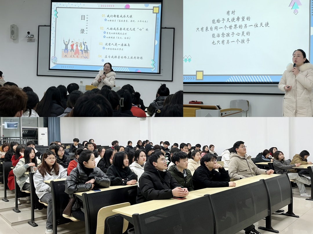 培训开始,郭老师以“我们都能成为天使”谈及心理助教就像班级调节的小太阳,当班上同学出现异常的时候可以适当去调节,去成为光、接近光、散发光,进一步讲解了心理助教的基本素养、原则和开学第一月心情温度计测评的工作安排;接着针对疫情后大学生易感心理问题进行了分析并提出了应对方法,特别是班级学生经过了疫情寒冬,回归常规生活之后,包括但不限于本周考试压力、不同年级阶段性心理问题、恋爱问题等,告知心理助教需要培训学习、宣传辅导、督导关怀、联系反馈,同学们可以通过倾诉、渐进式放松训练和预约咨询等进行解决困扰,进而明确了心理咨询相关事宜;最后就本学年后期班级心理活动建设和心理活动月宣传科普的工作进行了简单介绍,同时也对心理助教们如何开展心理活动进行了答疑。
