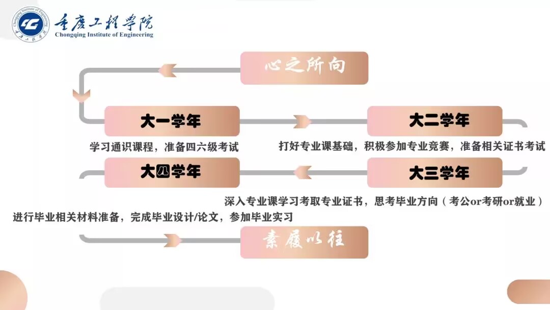 “心之所向,素履往之”,作为新时代重工青年,“心里想去的地方,就算穿着简单的草鞋也要前往”,大学便是实现梦想的殿堂。她曾作为高年级代表向我们分享过“大学指南”,她说“奋斗的青春最美丽”!