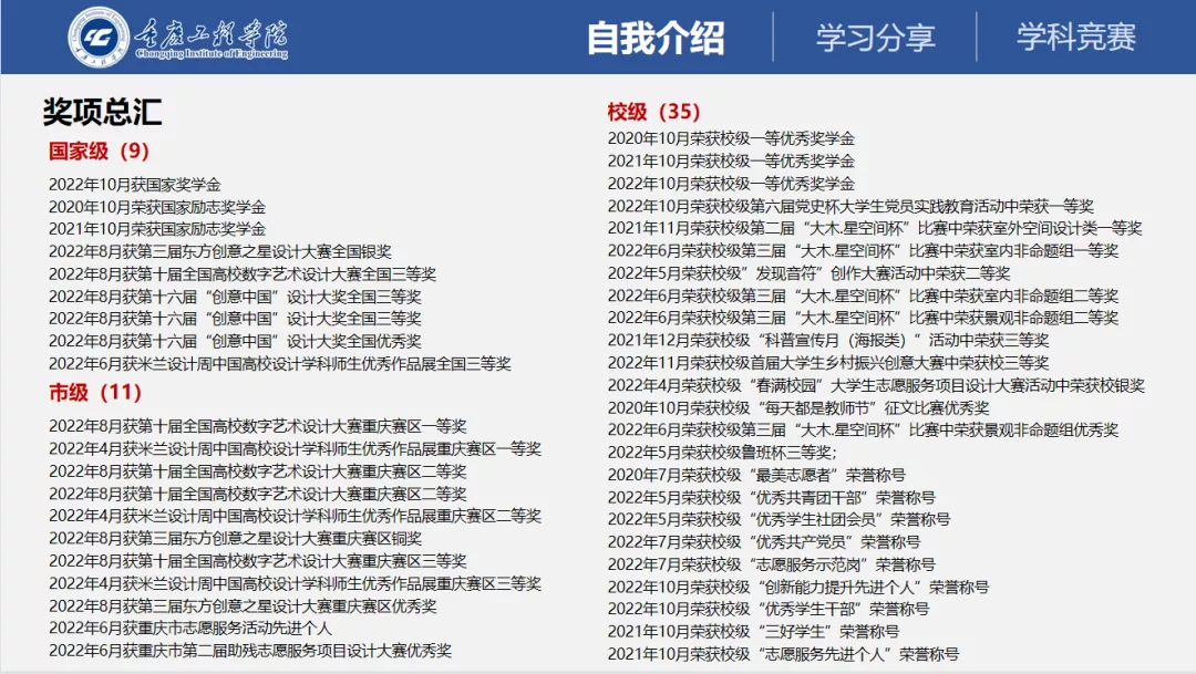 建筑工程学院朱家欣从进校以来,他对“言出必行”的追求从未改变,累计荣获奖项国家级9项、市级11项、校院级35项。