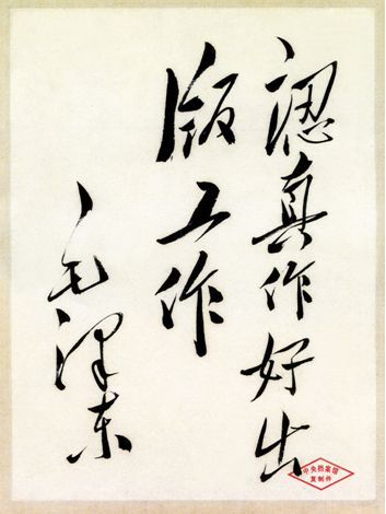 毛泽东为全国新华书店出版工作会议题词:认真作好出版工作。