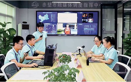 2019 年 5 月 19 日,湖北省赤壁市组织开展“新时代文明实践 你我同行”活动,“云上赤壁”全程手机直播,赤壁市融媒体调度指挥中心 对直播活动进行调度指挥。