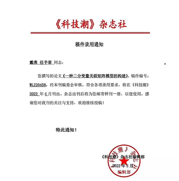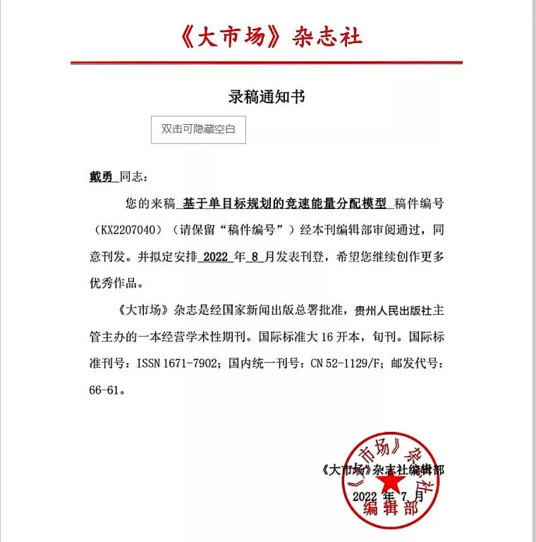 戴勇奋斗的大学生活中,累计以第一作者发表学术论文3篇,独立作者发表1篇;以第一作者申请软件著作权3项,主持大创项目2项。