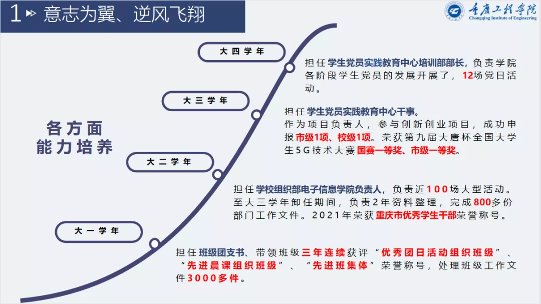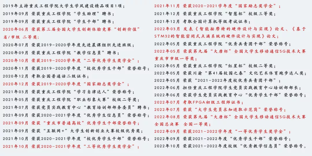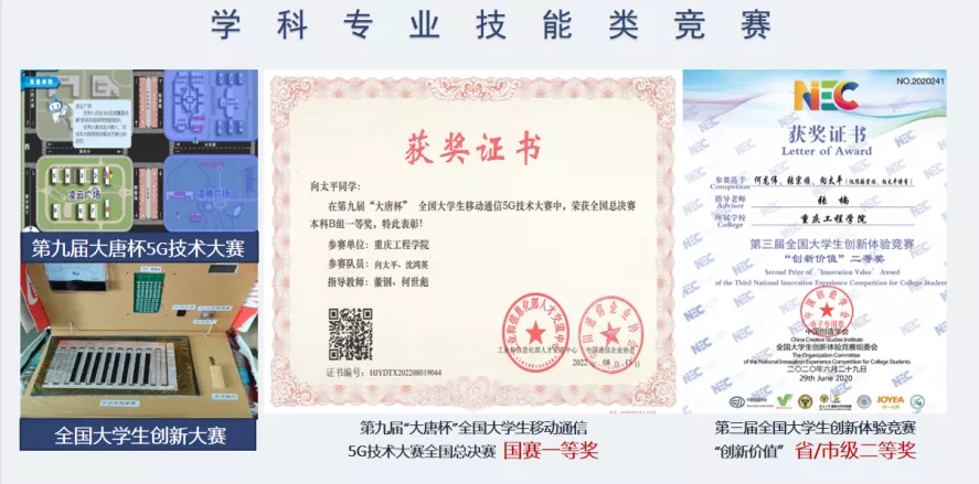 向太平靠着夯实专业基础,在三年的学习生活中获得优异成绩。在学院组织的“大唐杯”比赛中,他努力学习各种5G知识,争分夺秒的进行仿真练习,获得重庆市市级一等奖,成功进入国赛。备赛国赛的时候,他顶着压力(期末考试、博士研究生强敌),在学院和老师的指导帮助下,成为此次我校唯一获得国赛一等奖的比赛队伍,也是近五年来我校在该项比赛获得的最好成绩。