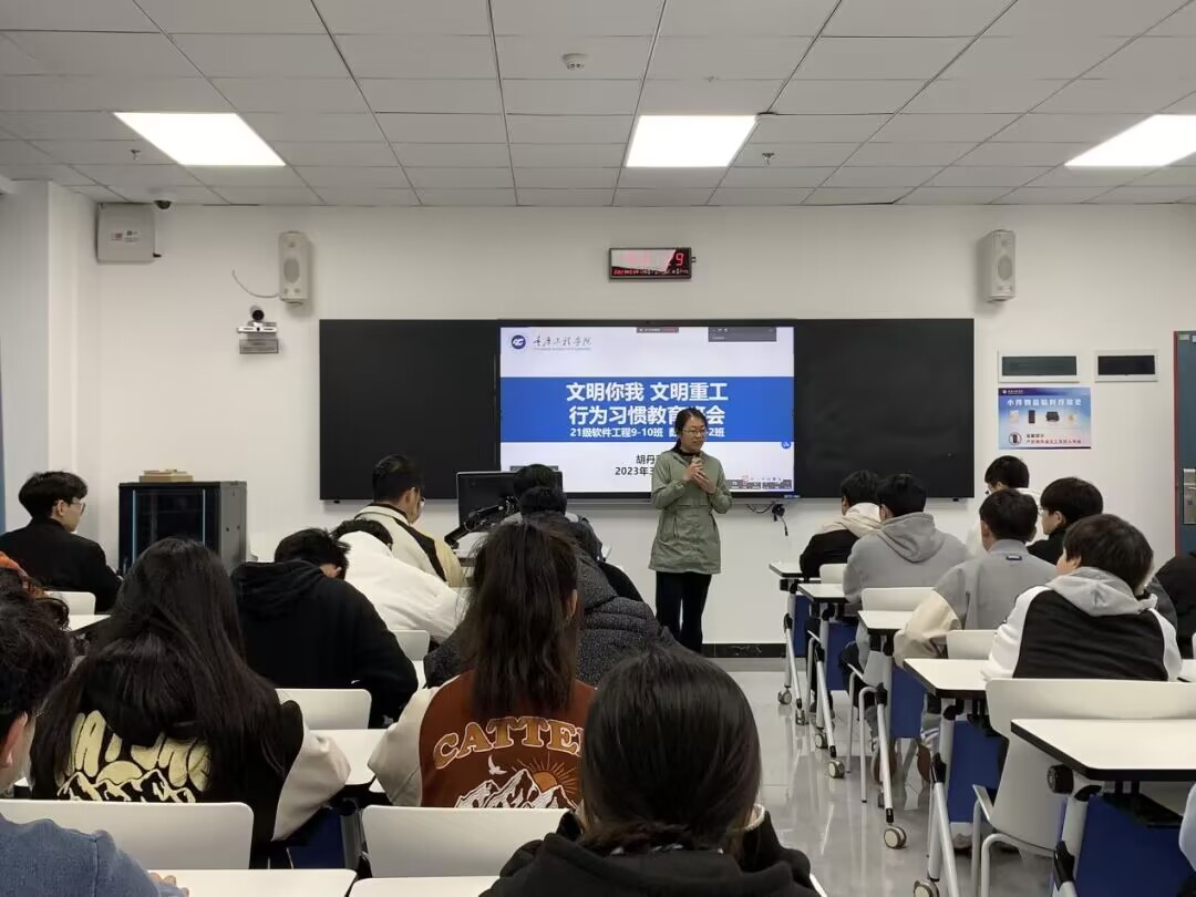 为进一步将文明意识扎根在每个学生心中,培养学生文明行为习惯,软件与人工智能学院辅导员胡丹萍老师组织开展了“文明你我,文明重工”行为习惯主题班会教育活动。