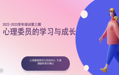 为帮助2022级心理委员更好地开展工作,提升专业水平和能力,促进自我成长,心理专职教师牛漫老师于2023年5月18日晚八点于第一教学楼410开展了“心理委员的学习与成长”第三期心理委员培训,大一71位心理委员参加本次培训。