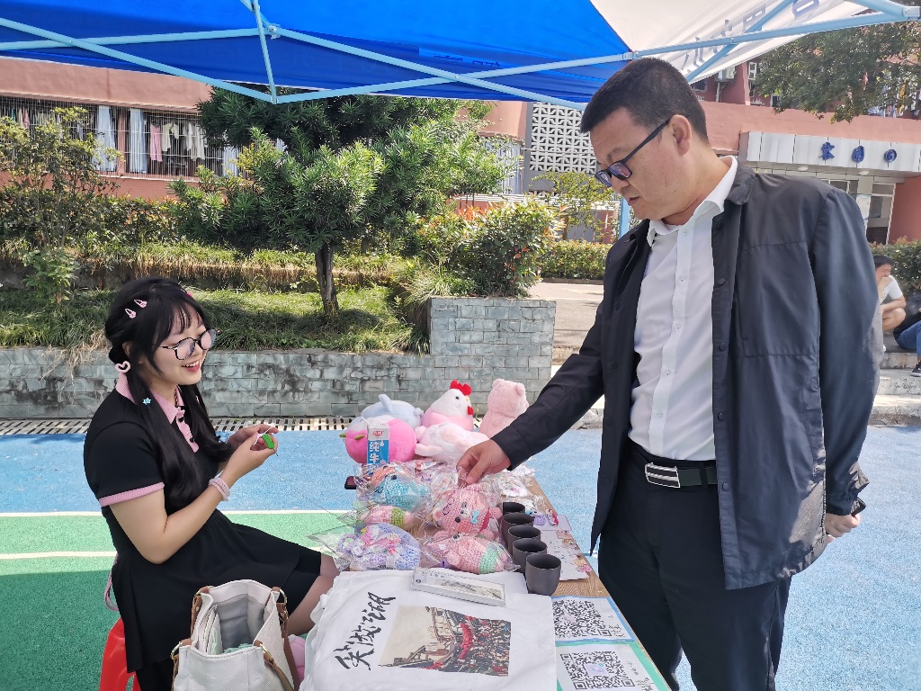 图8.王建东副校长到现场体验“心情集市”