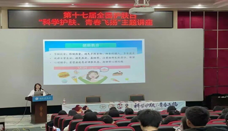 2023年5月24日,皮肤科主治医师郭思琦、护士何雨来到我校对同学们进行了皮肤健康知识的科普和义诊公益活动,现场300座的阶梯教室,座无虚席。